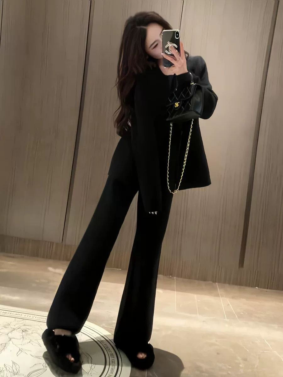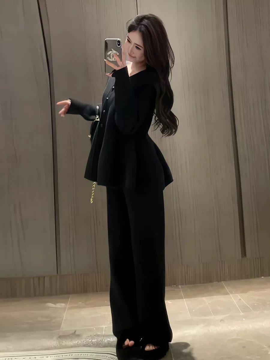بدلة مايارد الجديدة المكونة من قطعتين للنساء من الربيع والخريف بتصميم فرنسي كلاسيكي محبوك بكشكشة