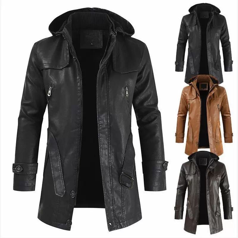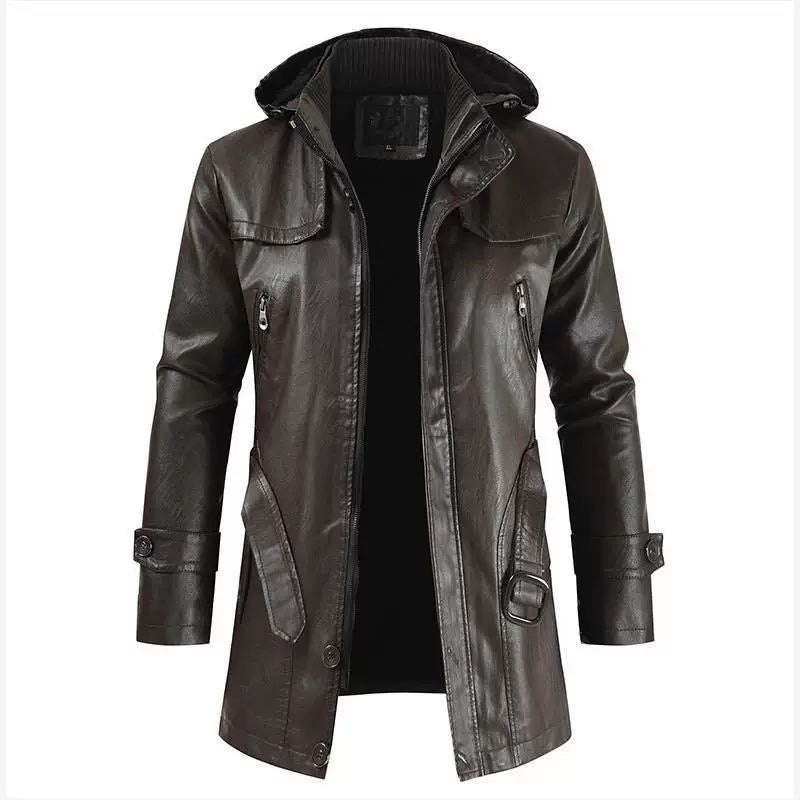 Men's Mid-Length Faux Leather Jacket – Korean Style