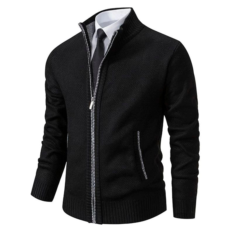 Men’s Jacquard Knit Stand-Collar Jacket – Winter Velvet Style