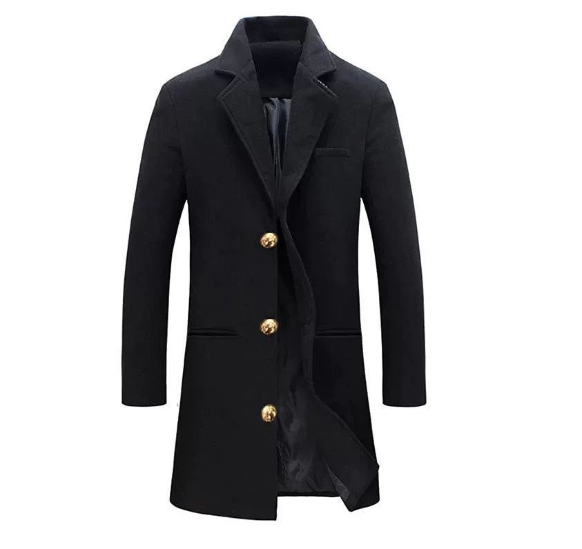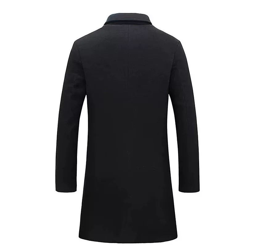 This stylish wool trench coat is designed for tall men and perfect for spring, autumn, and winter. With a mid-length cut and single-breasted front, it offers a clean, modern silhouette in a solid color that suits both casual and formal settings.