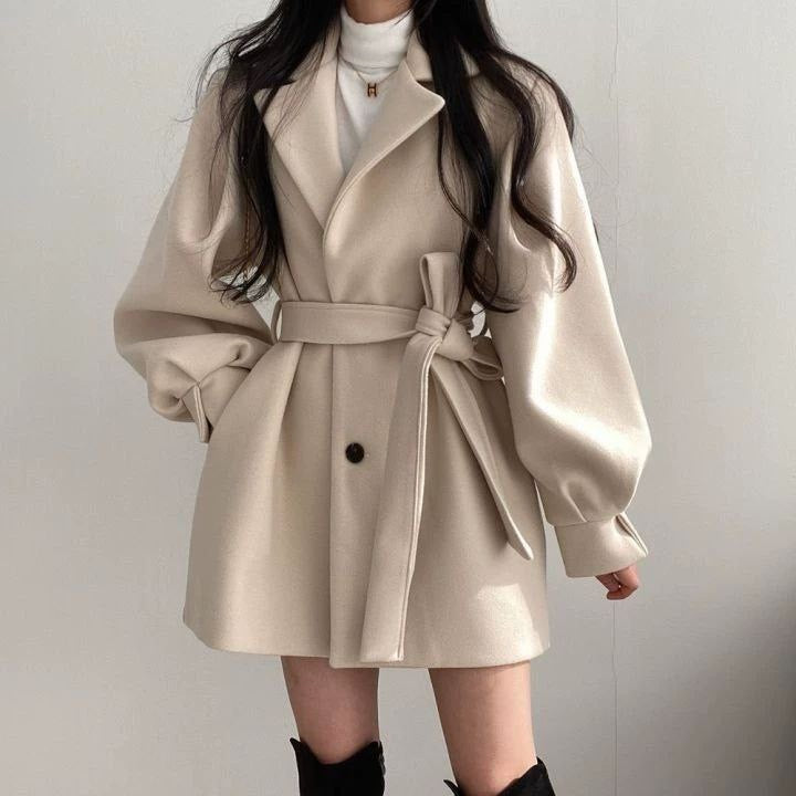 Small collar, thick fabric with belt – perfect for women's fall and winter