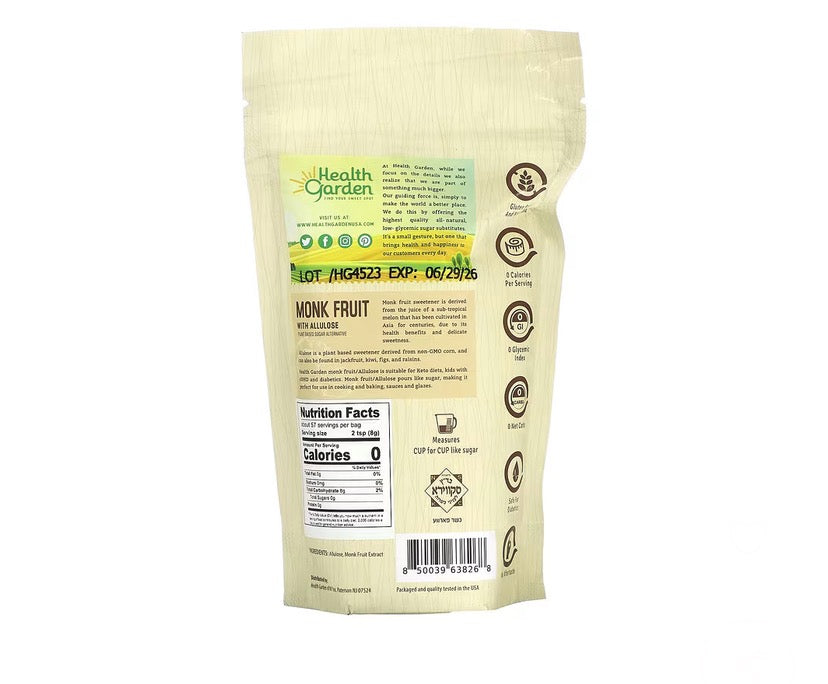 Enjoy guilt-free sweetness with Monk Fruit + Allulose, a plant-based, zero-calorie sugar substitute that tastes and bakes like real sugar—without the carbs or aftertaste. Ideal for keto, diabetic, and gluten-free lifestyles.