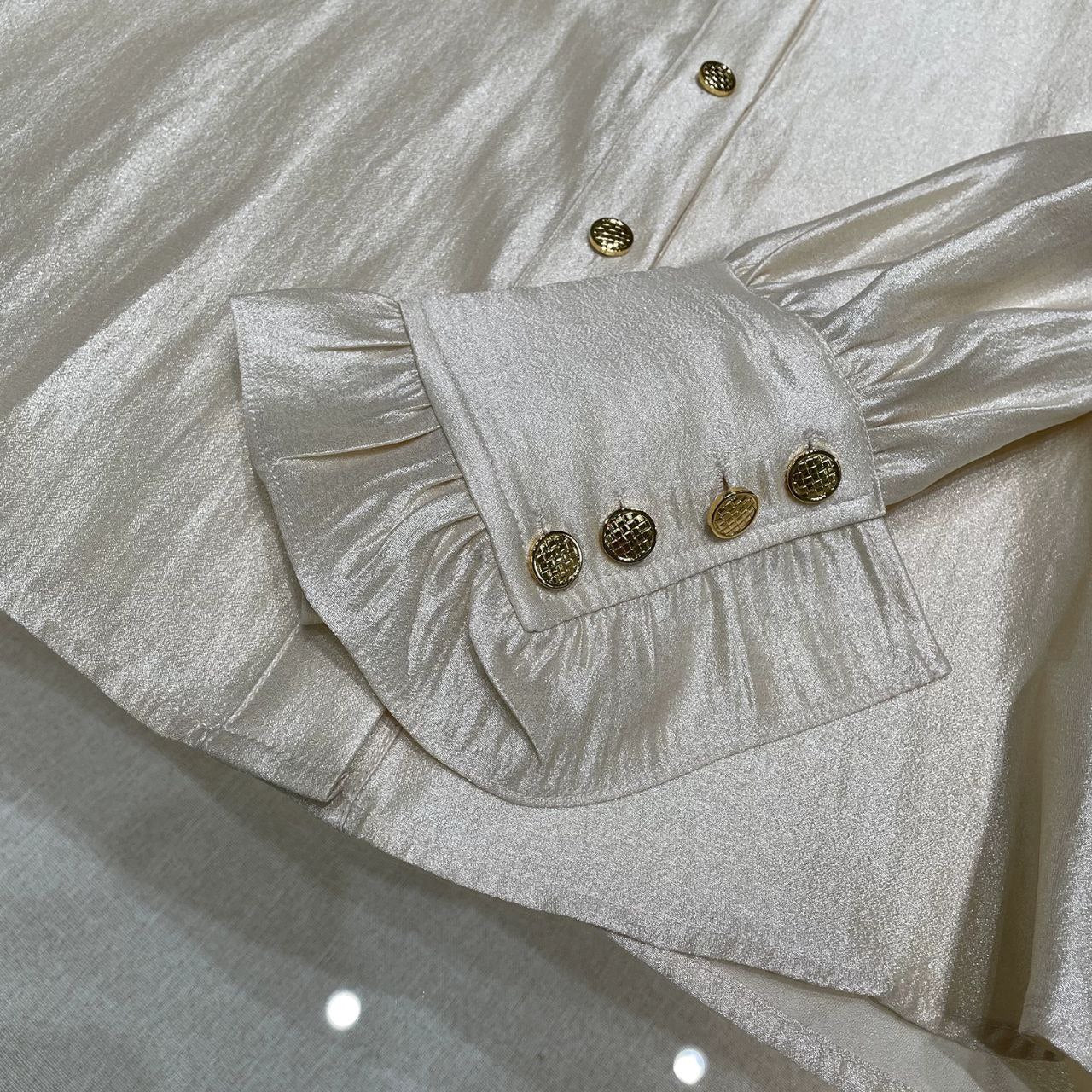 قميص نانيو النسائي عالي الجودة للخريف - أكمام طويلة وياقة فرنسية، بلمسة نهائية من الساتان