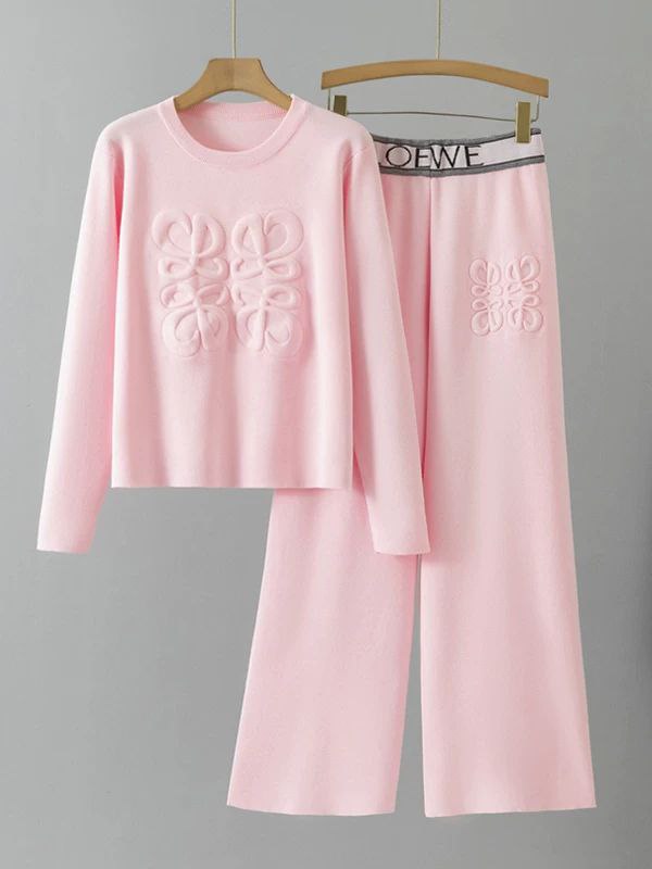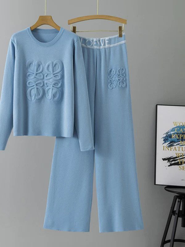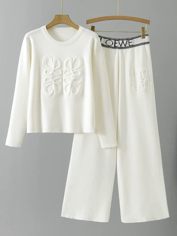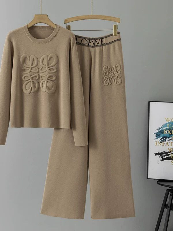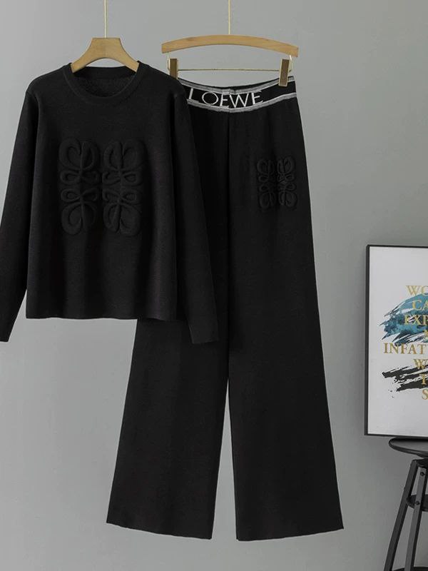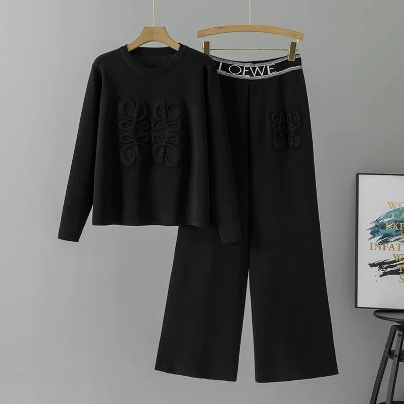 New European and American Trendy Printed Suit with Elegant Round Neck + Casual Knitted Jogger Pants