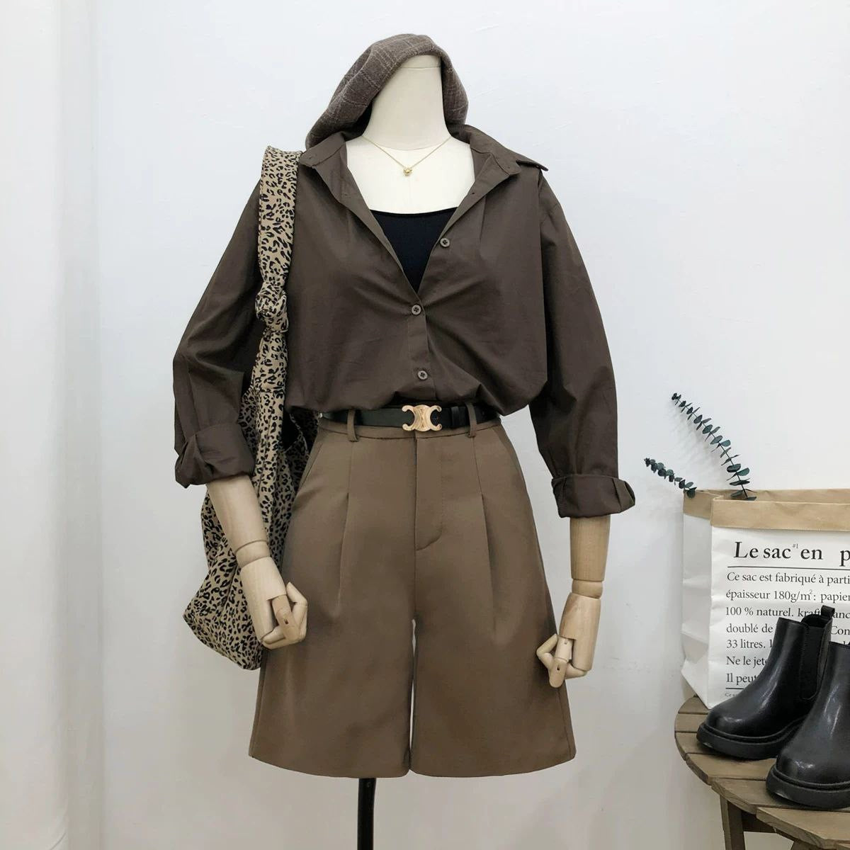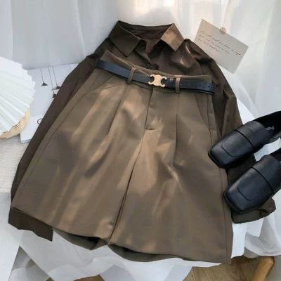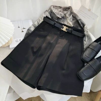Loose-leg plus size suit shorts for women, ideal for spring and summer. New relaxed-fit design for all body types.