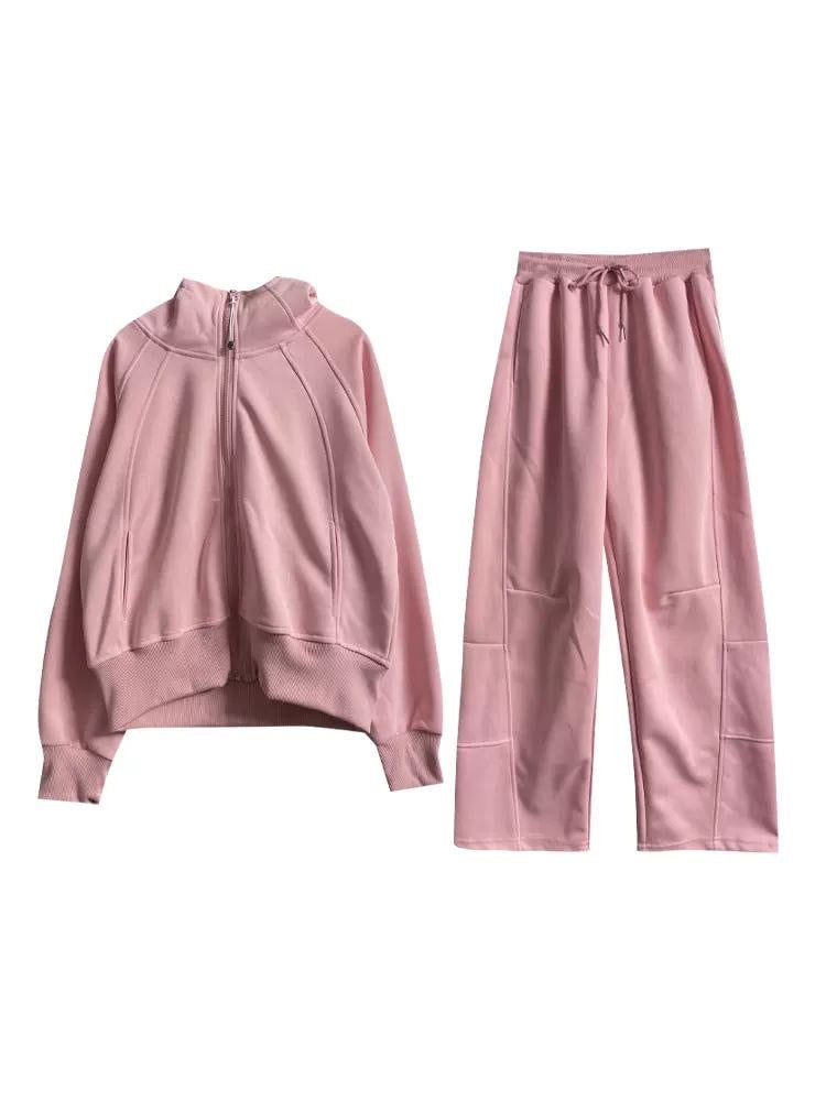 Bequemer und trendiger Frühlings-/Herbstanzug mit kurzer Reißverschlussjacke mit hohem Bund und weiter Hose
