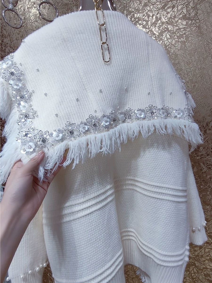 استمتعي بالفخامة والأناقة مع هذا المعطف الشال الكبير الحجم المصنوع من آلاف حبات الترتر الزهري المزين بالخرز بجودة عالية ولمسة فنية أنيقة.