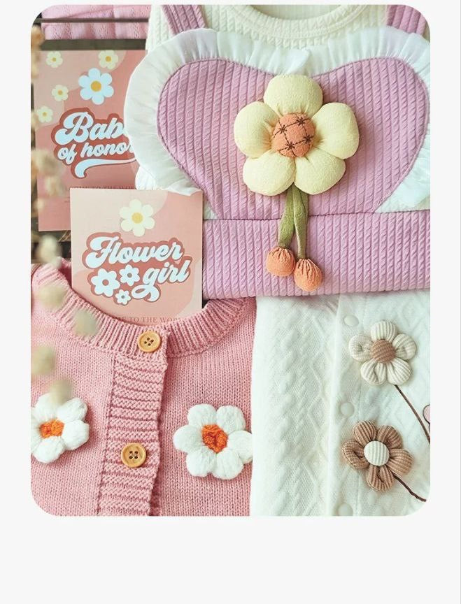 صندوق هدايا لطلفة صغيرة بألوان وردية وتصميم أميرة لطيف، مثالي لفصول الربيع والخريف والشتاء. مكون من قطع قطنية ناعمة ومريحة للأطفال الرضع.