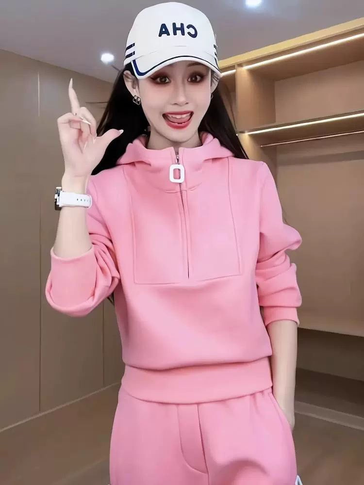 Pink Two-Piece Casual Set – Hoodie & Shorts, Early Fall Celebrity Style