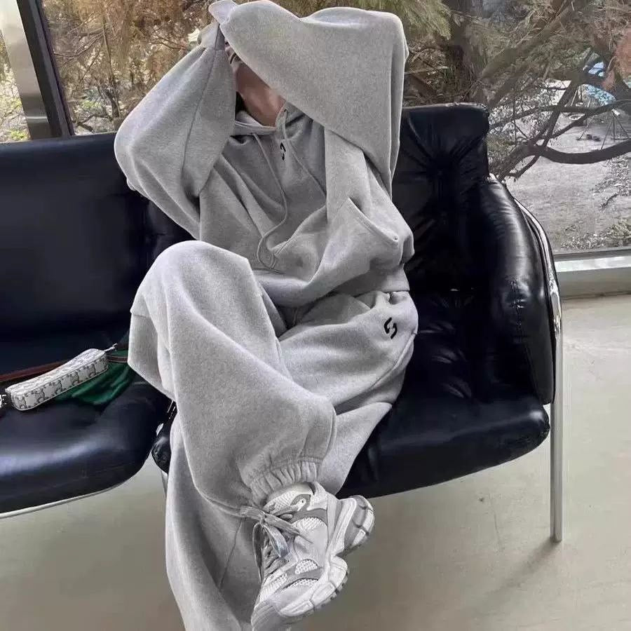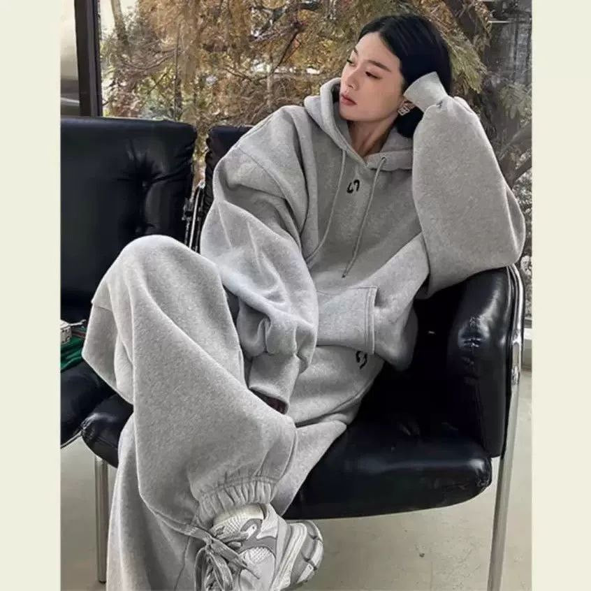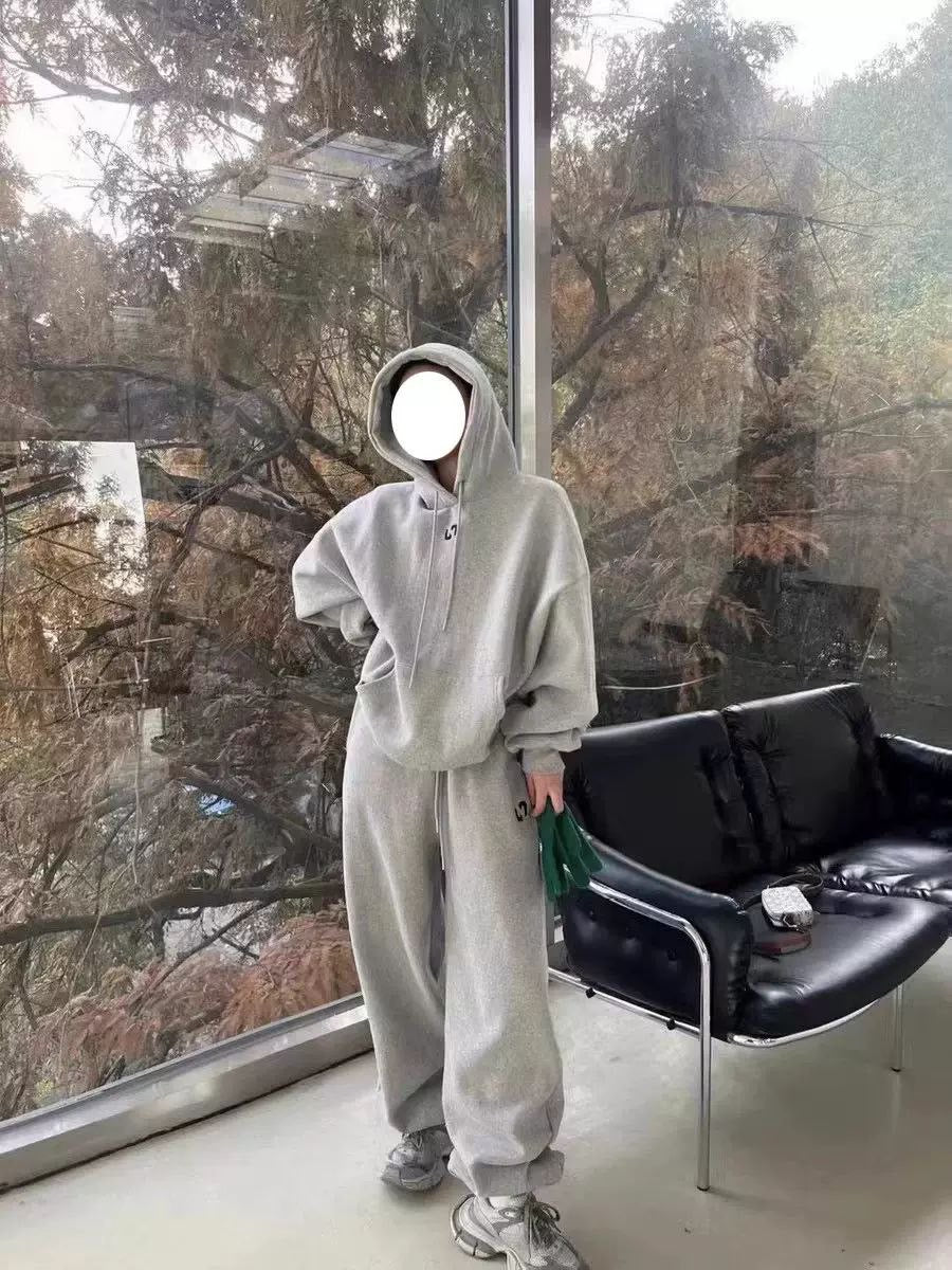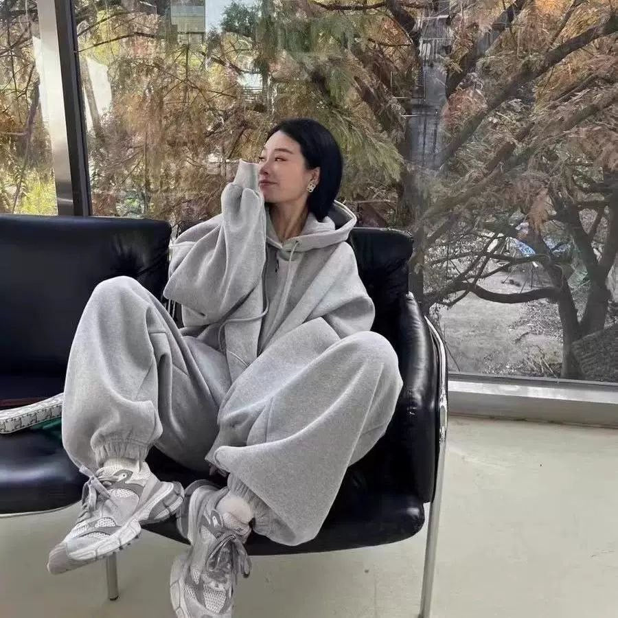 Loose and comfy fall/winter set for women, includes a jacket and pants. Great for students and daily wear during cold seasons.