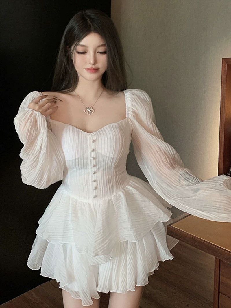 اسم المنتج بالإنجليزية: Plus Size Sexy Square Neck Dress for Women – Early Spring Fairy Style
