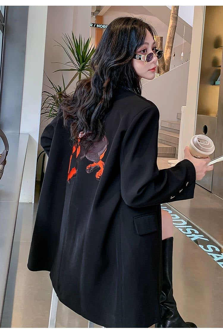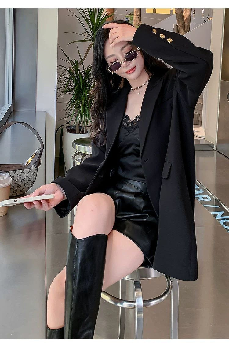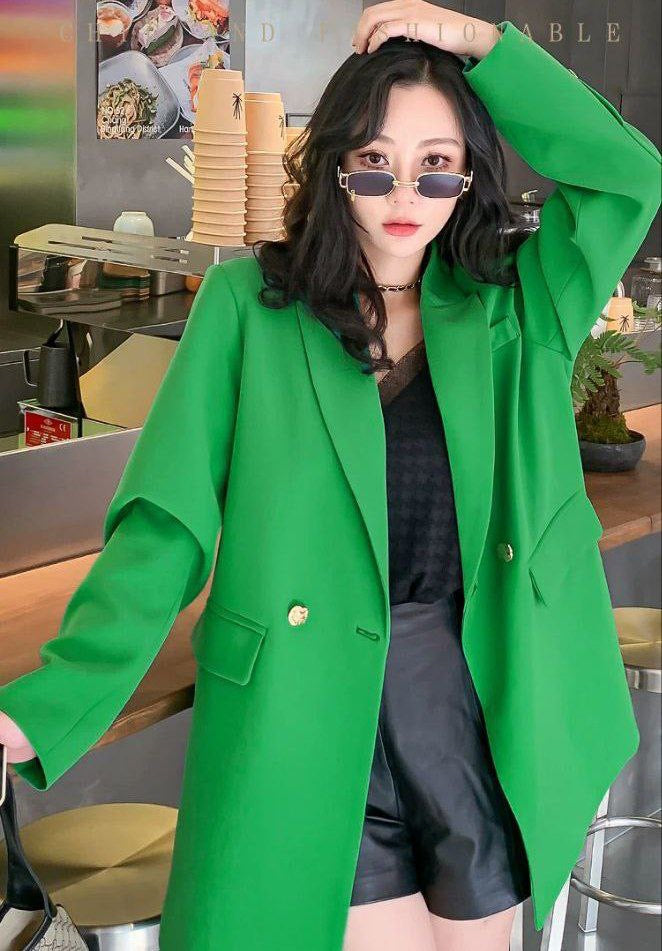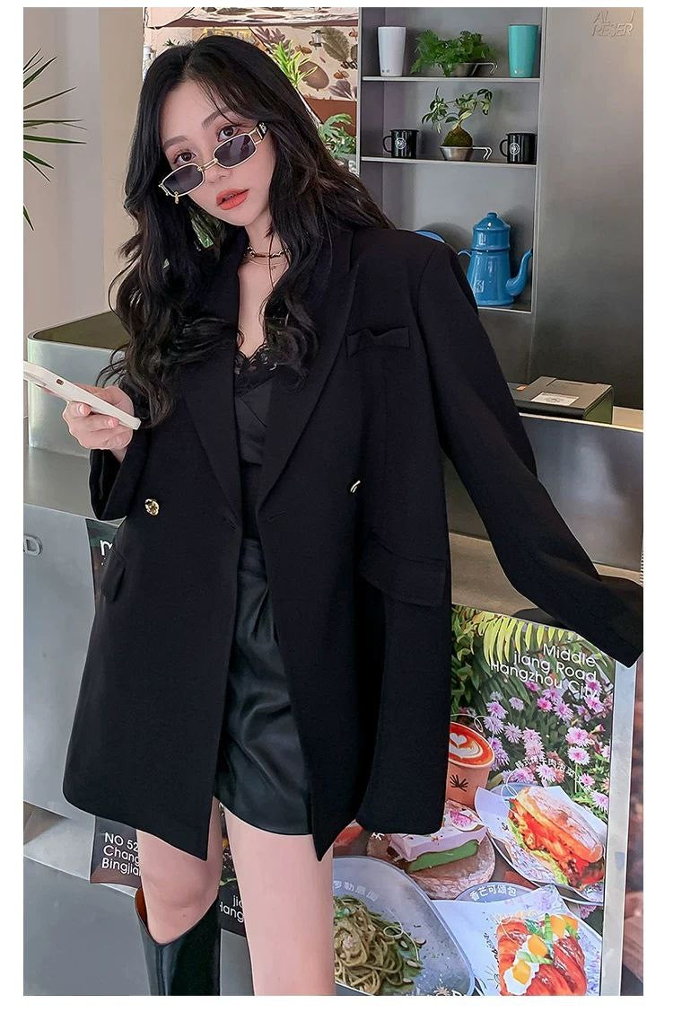 High-quality oversized suit jacket with casual fit, perfect for spring and autumn. Designed with new plus-size fashion trends in mind.