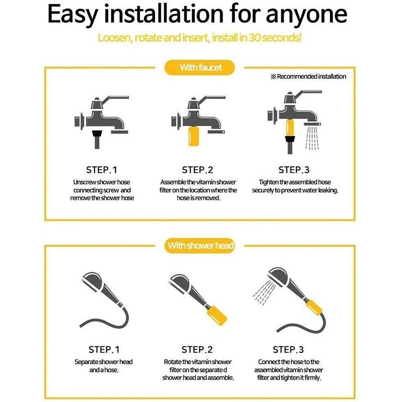 Chlorine Removal: Filters out chlorine, improving the water quality for your skin and hair.