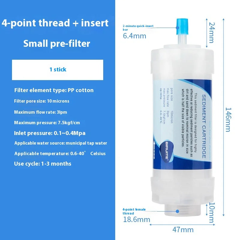 • Water Filtration: Reduces chlorine taste and odor, improves water taste.