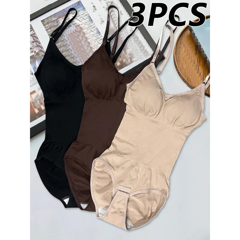 طقم ملابس داخلية نسائية للتحكم في الوزن، مصمم بأناقة ودعم عالي. مصنوع من مزيج البولي أميد والإسباندكس، بلون موحد وتفاصيل أزرار أمامية. يأتي في عبوة من ثلاث قطع، يوفر الراحة والتهوية الجيدة وتشكيلًا سلسًا للملابس اليومية أو الرسمية.
