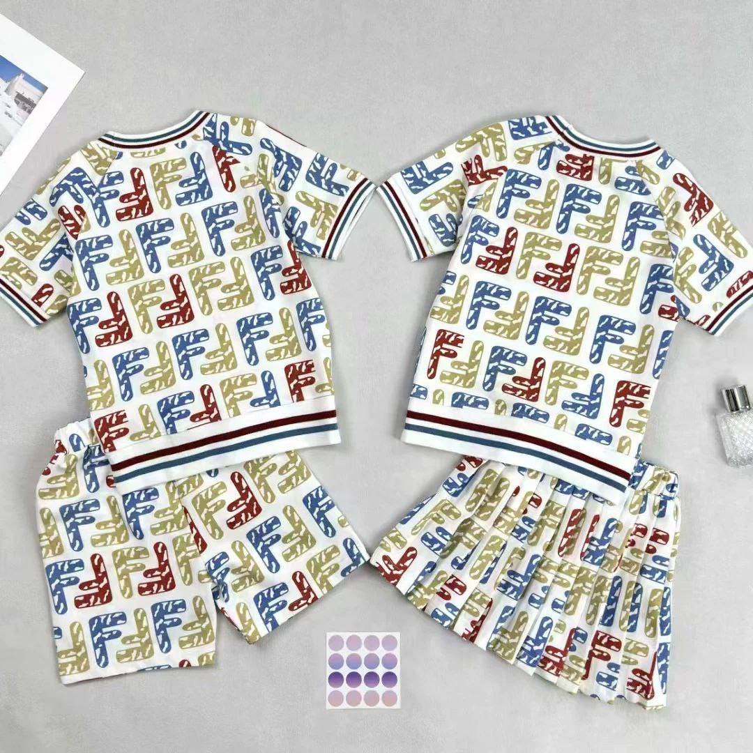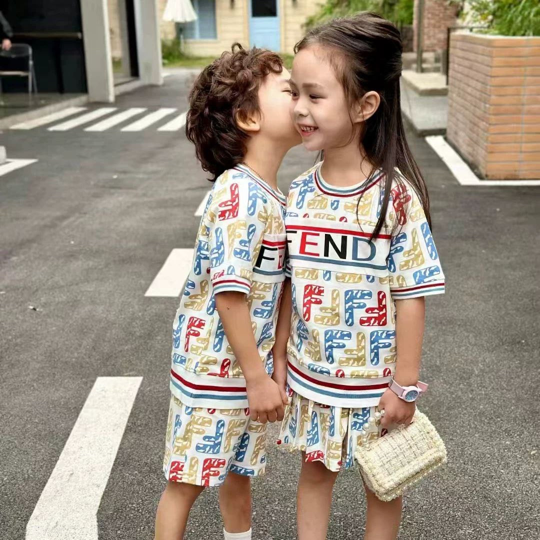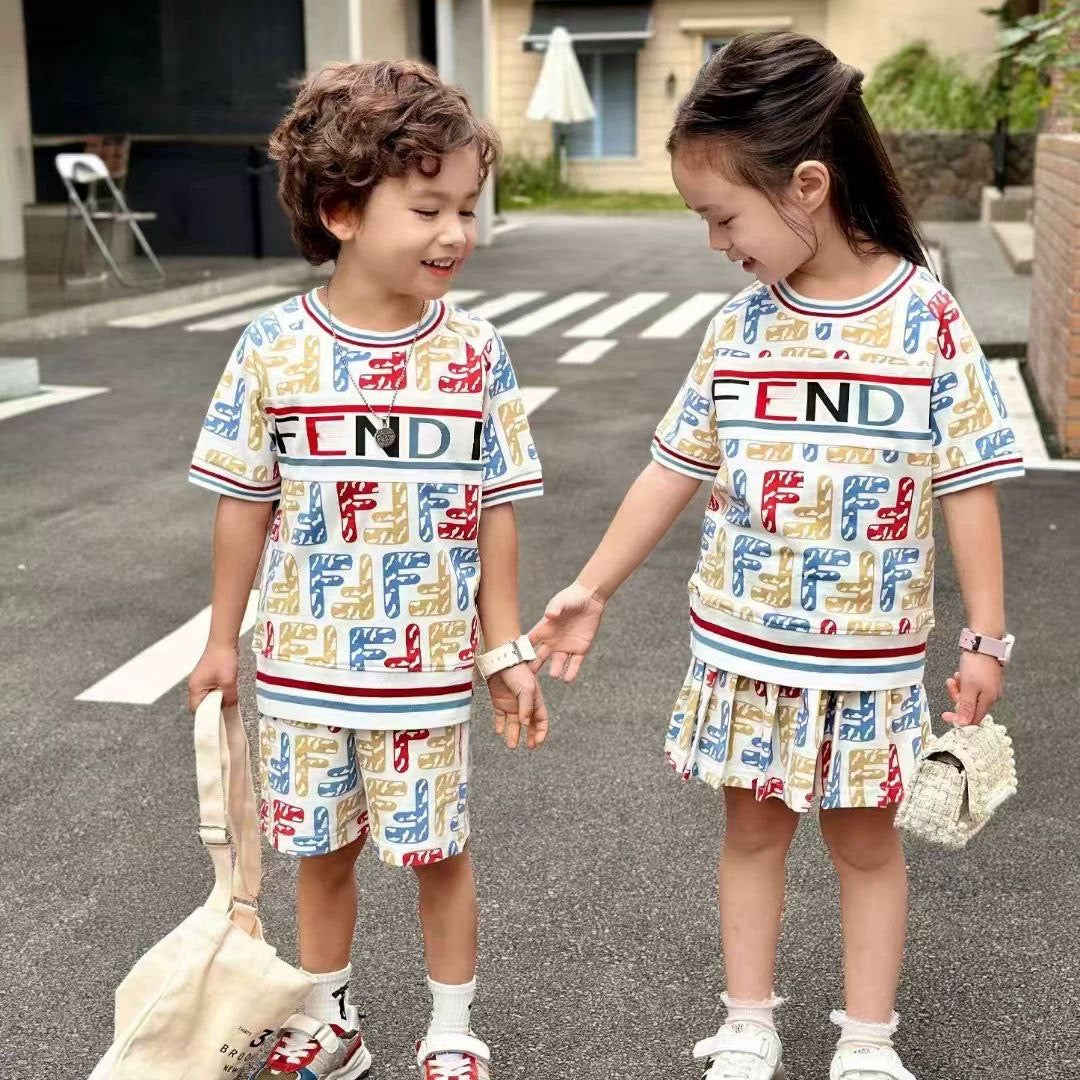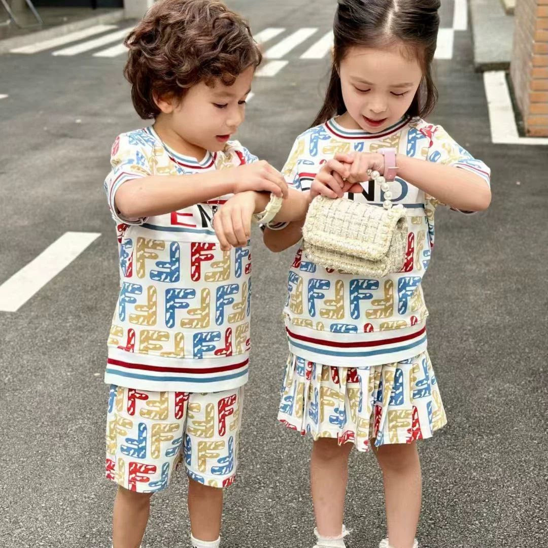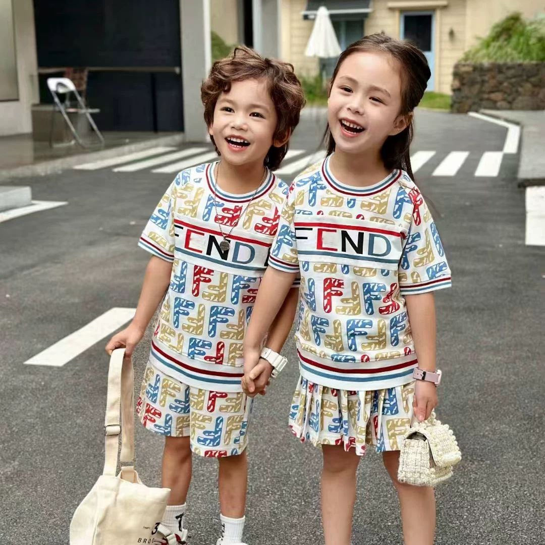 ملابس قطنية عصرية، تنورة للبنات وتي شيرت مع شورت للأولاد – مثالية لرياض الأطفال والصيف