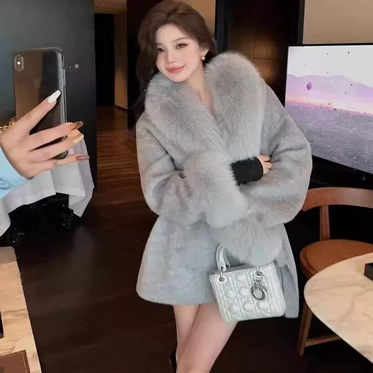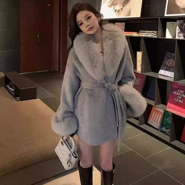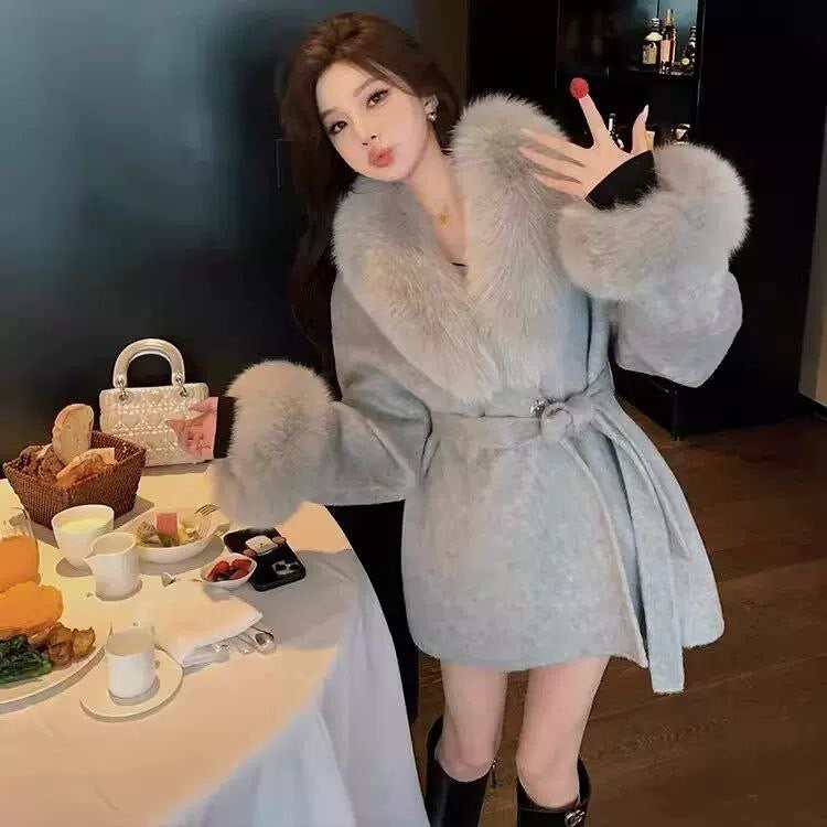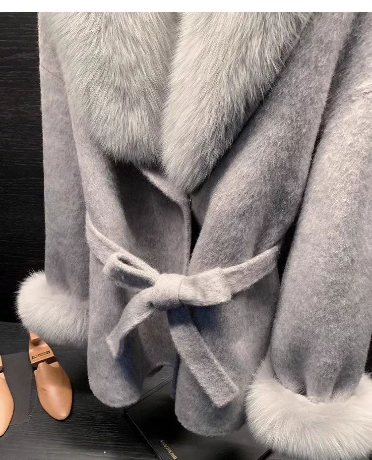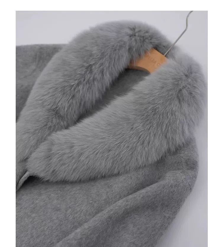 High-quality oversized wool coat for women, featuring a royal-inspired loose fit. Ideal for autumn and winter, with medium-to-long length to cover the tummy.