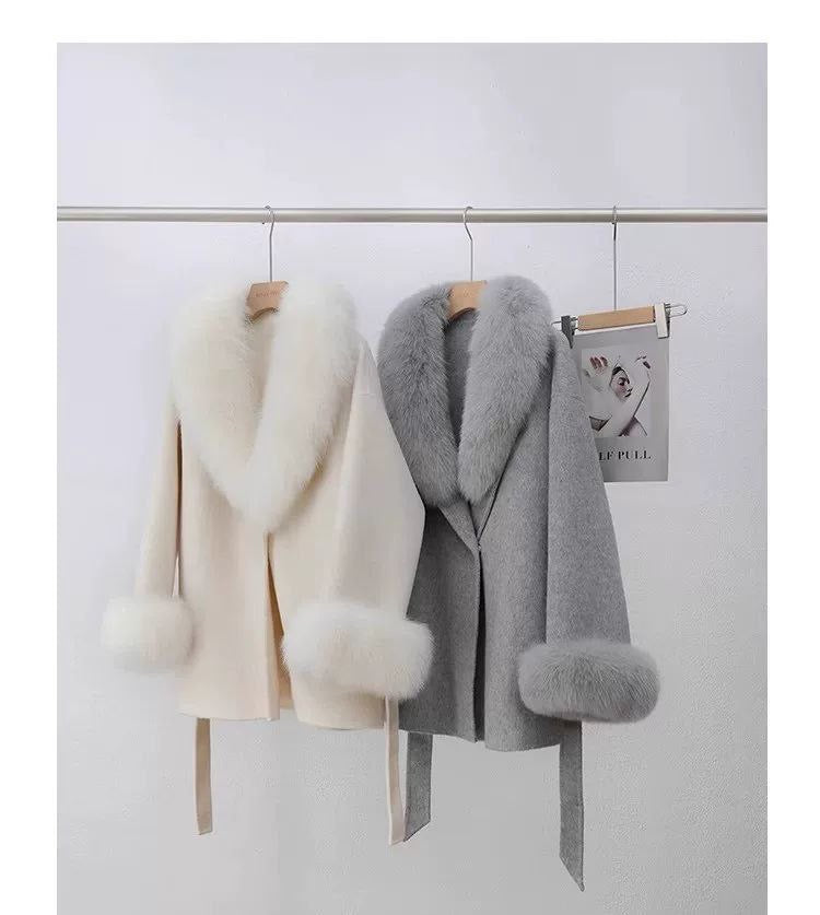 معطف صوفي فاخر وفضفاض مصمم بأسلوب ملكي أنيق، مثالي لفصل الخريف والشتاء. تصميم متوسط إلى طويل لتغطية البطن والدفء الكامل.