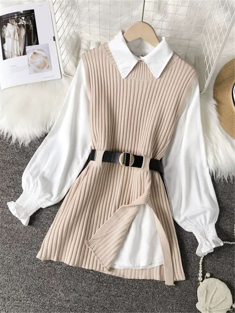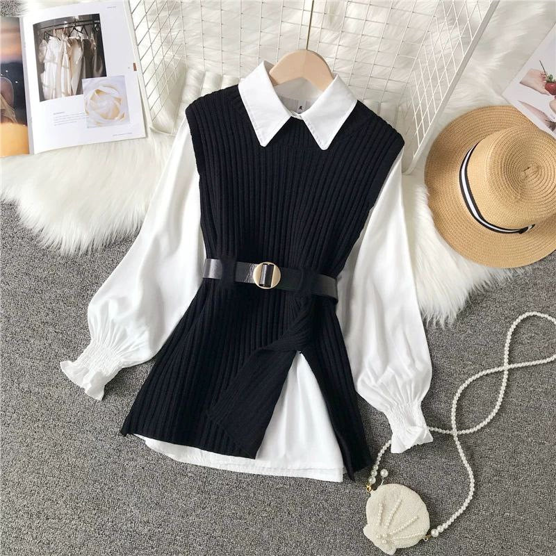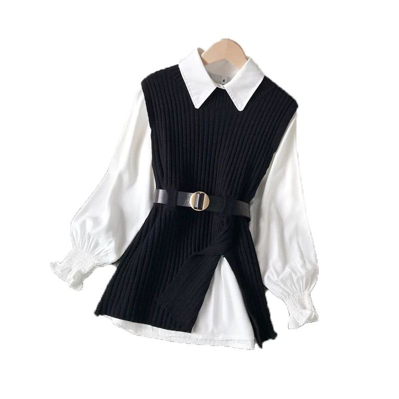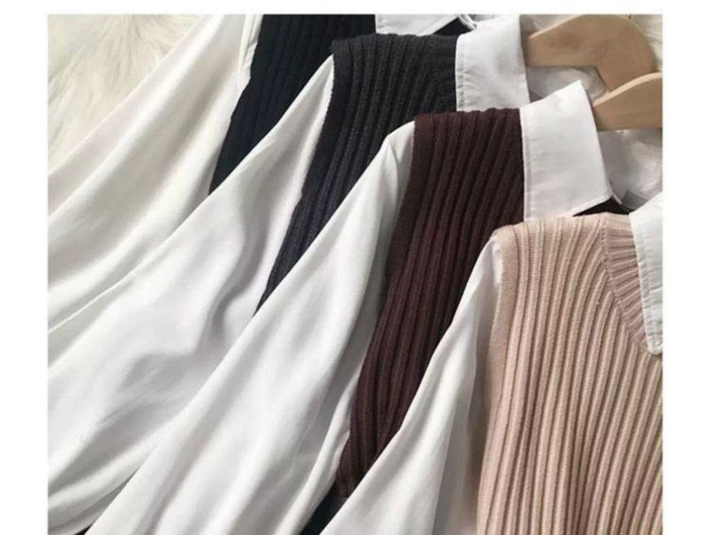 ربيع وخريف – نمط جديد – قميص، قمم، سترة، شق محبوك، بطانة، سترة نسائية