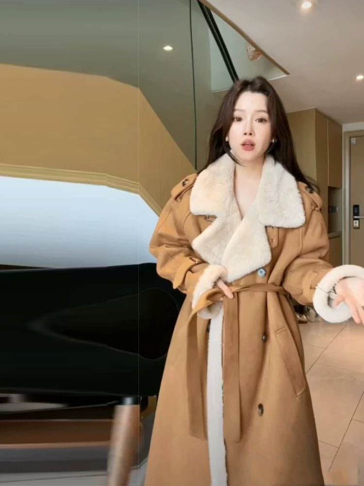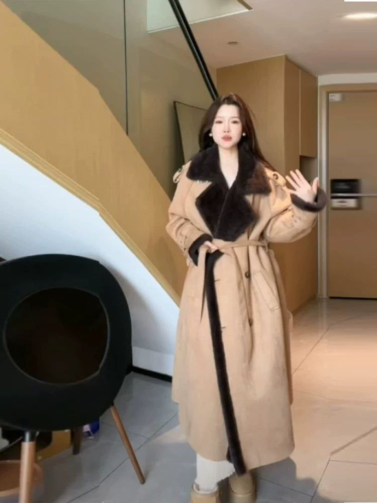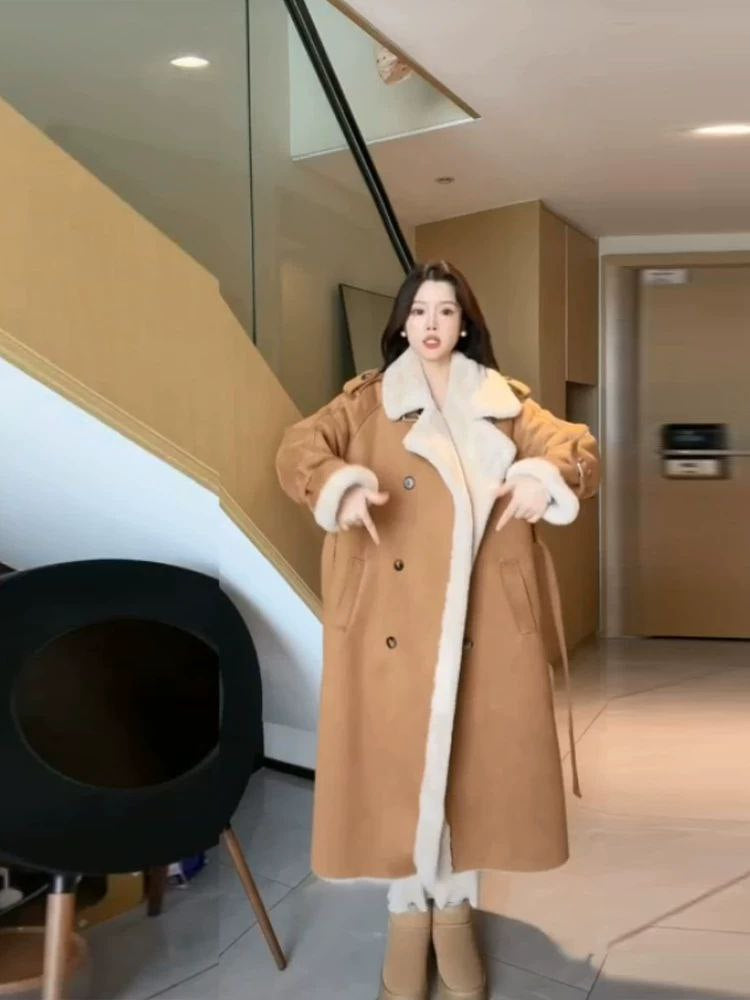 معطف نسائي شتوي من جلد الحمل والكشمير
