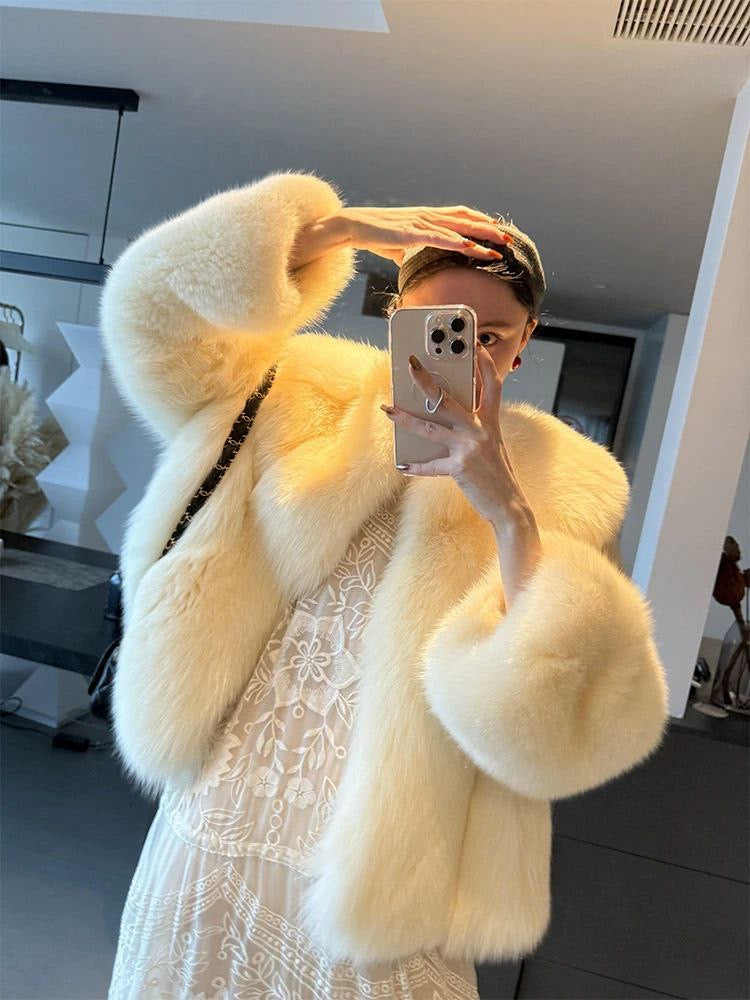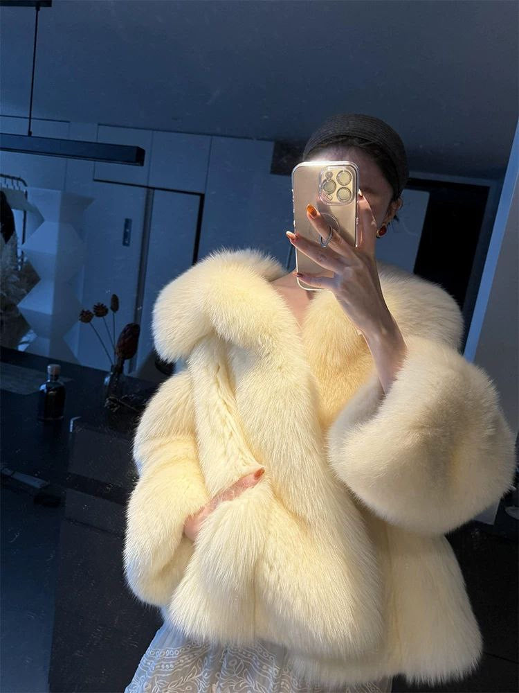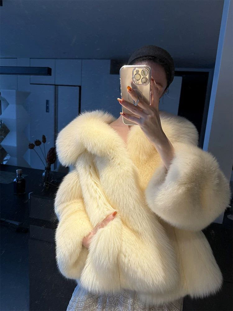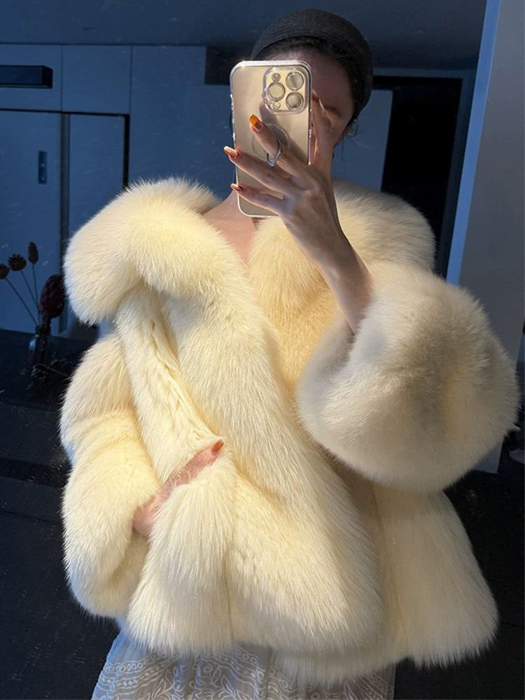 Winter short coat made from high-quality eco-friendly faux fox fur. Soft, warm, and stylish – the perfect pick for cold seasons.