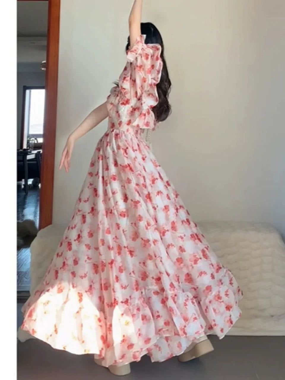 مزاج صيفي أنثوي جديد لطيف وجميل – تنورة أنيقة زهرية فريدة من نوعها