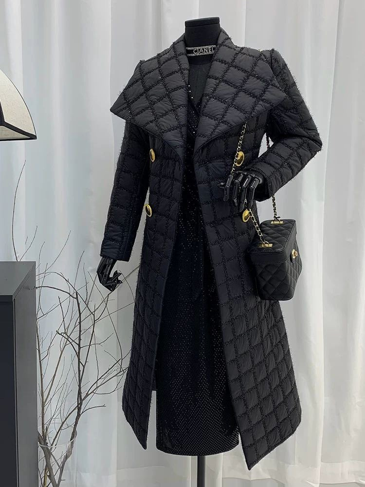 Elegant Korean-style winter coat, thick padded mid-length with cozy collar – Ideal for cold days and stylish daily looks