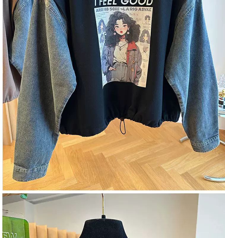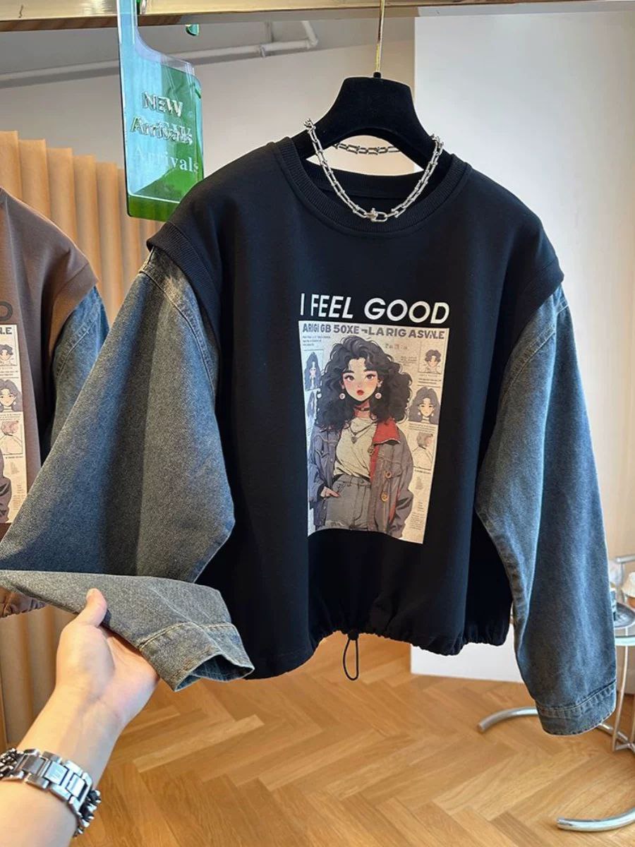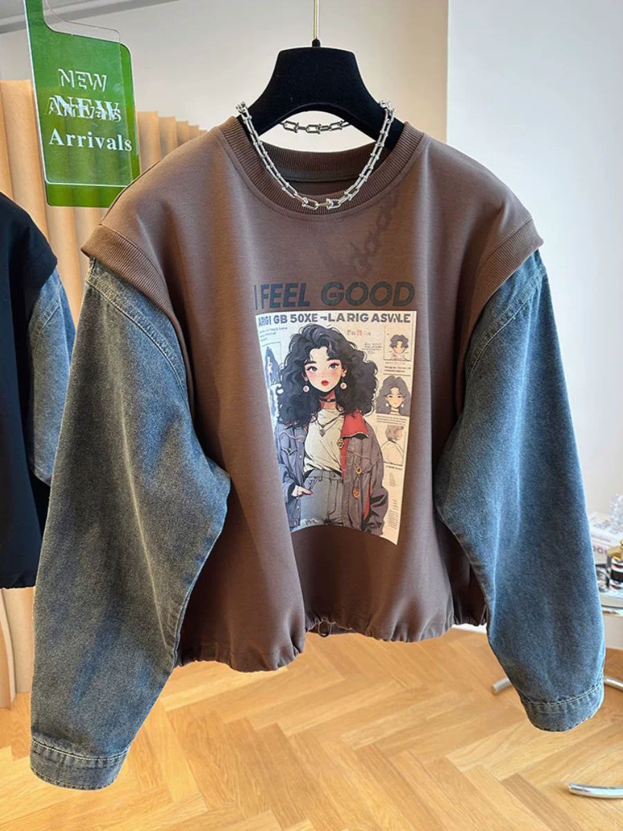 قميص دنيم فضفاض بنمط ريترو مطبوع للجنسين