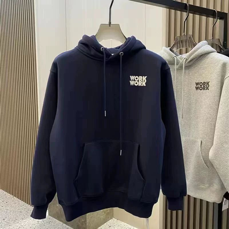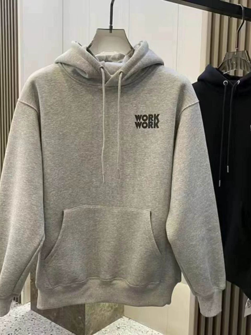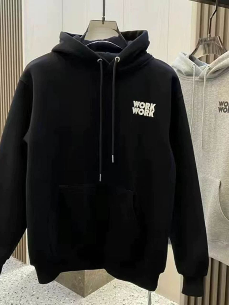 سويت شيرت رجالي بقلنسوة من القطيفة مناسب للخريف والشتاء، مطبوع عليه حروف من العلامة التجارية العصرية، نمط هونج كونج فضفاض