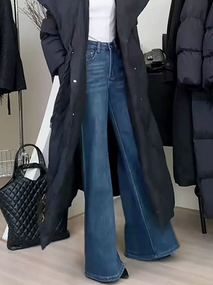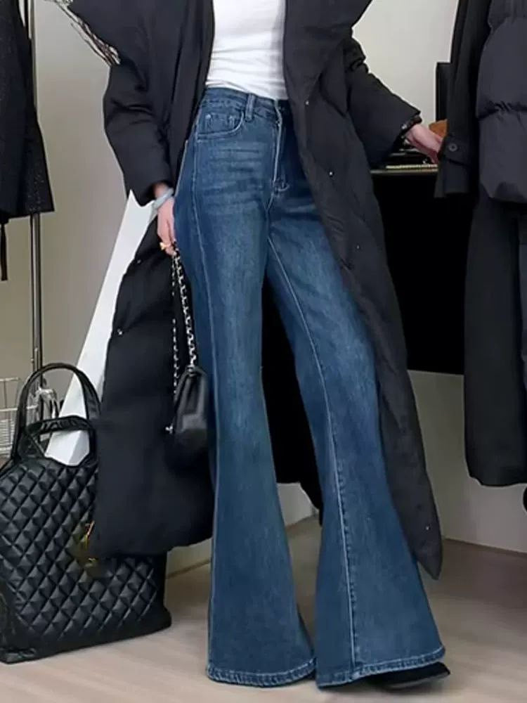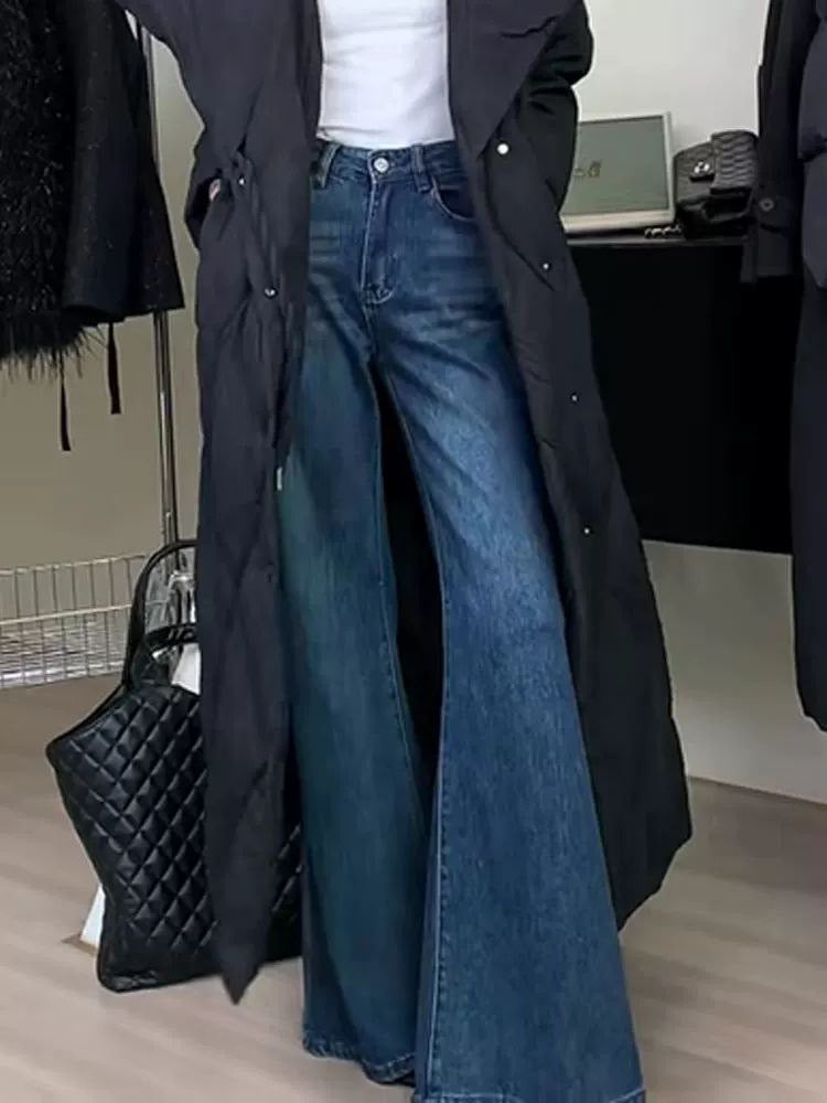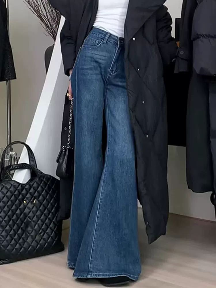 بنطلون جينز أزرق عتيق واسع الساق للنساء
