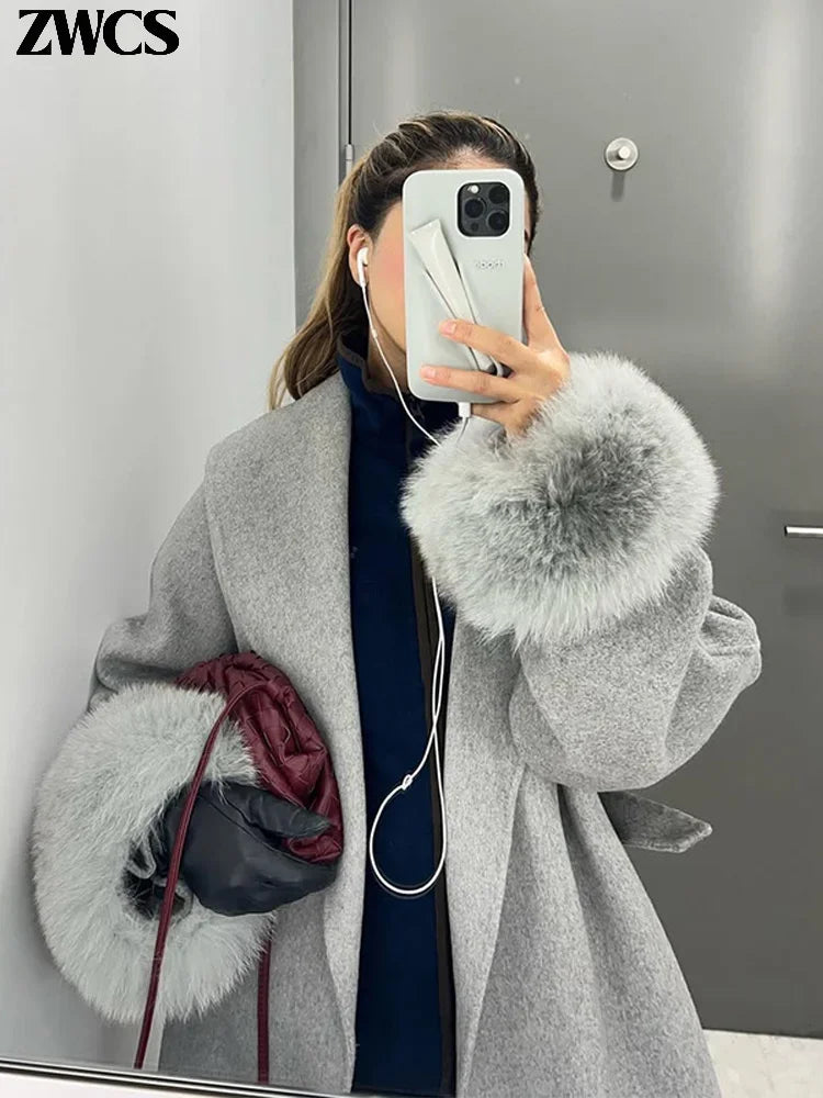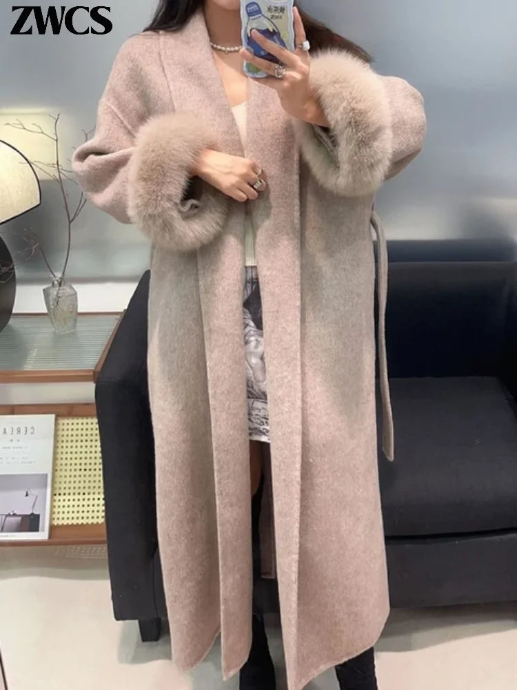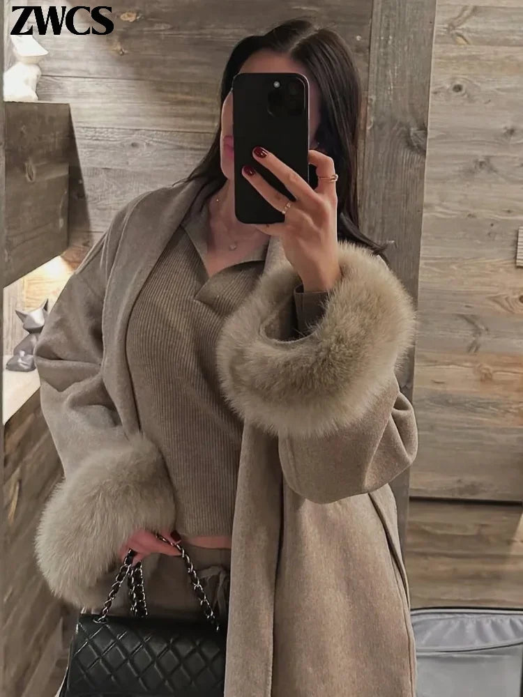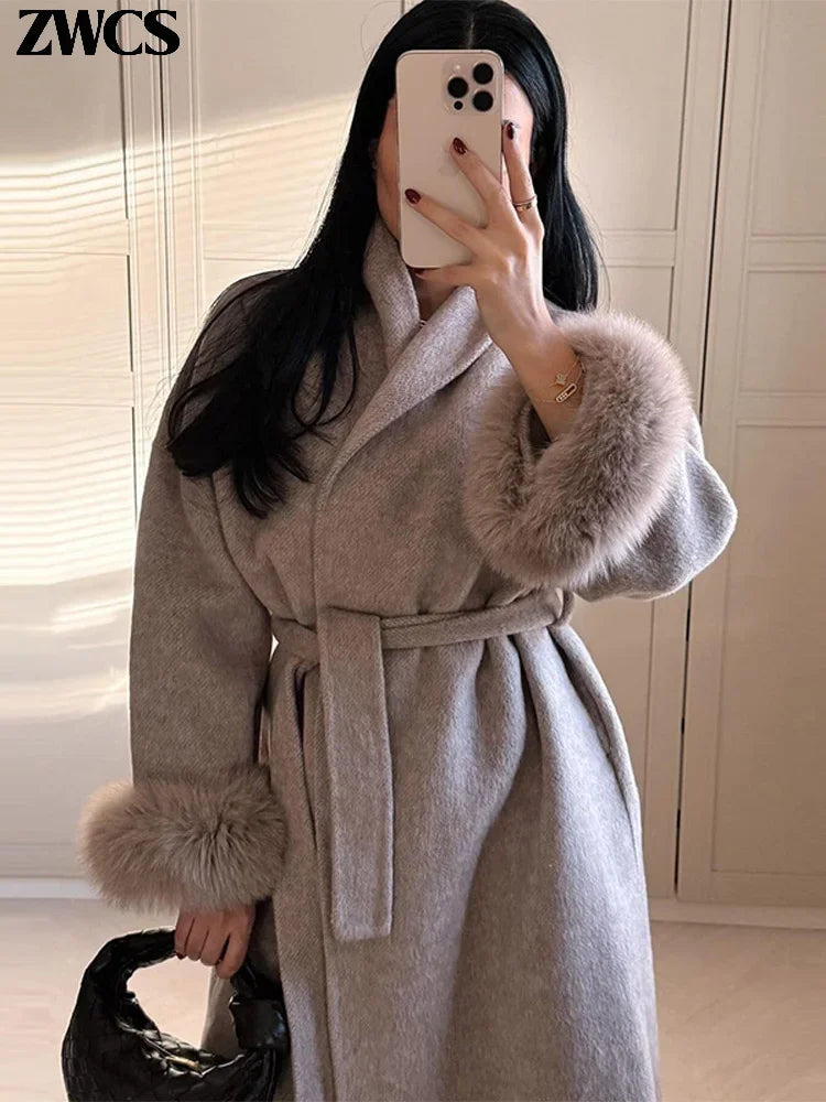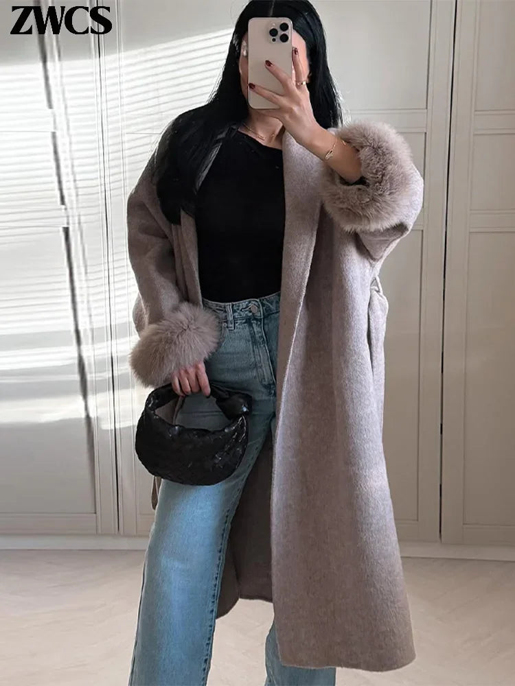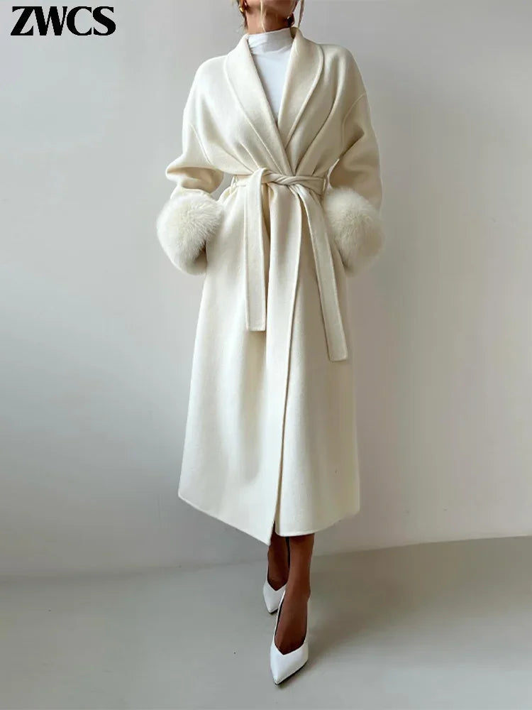 معطف صوفي دافئ بغطاء رأس وتفاصيل رباط وشرائط. مريح ودافئ، مثالي للخريف والشتاء.