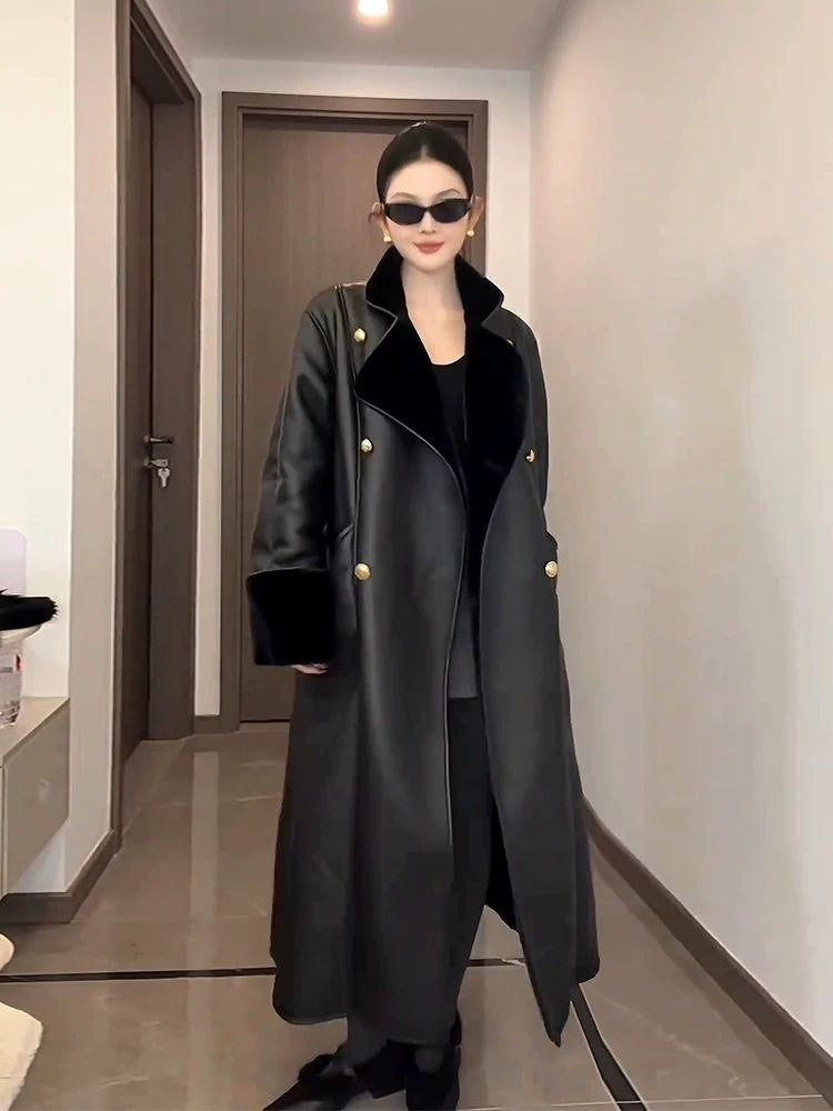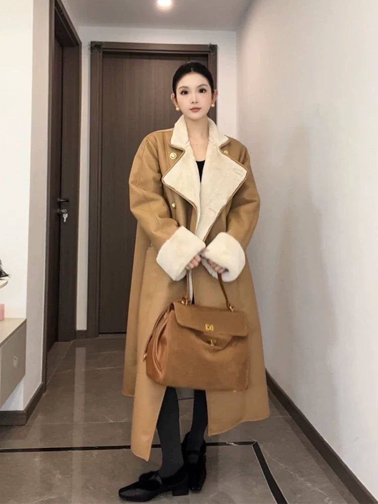 Stay warm and stylish this winter with our newly designed lamb fur coat. Featuring a mid-length silhouette and a soft white collar, this coat blends comfort and elegance for cold days.