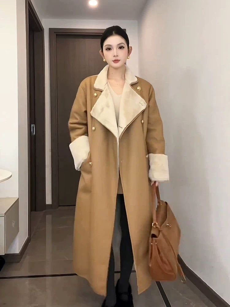 Women’s Winter Lamb Fur Coat, Mid-Length, Warm & Thick