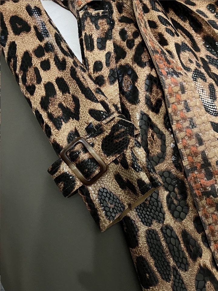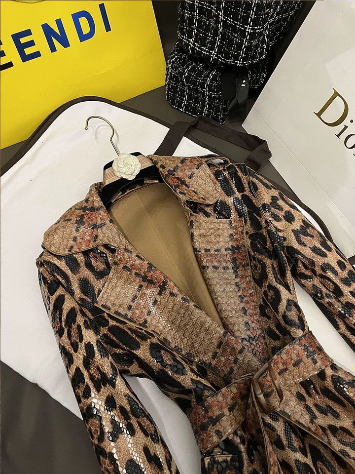معطف أنيق خريفي لعام 2025 مستوحى من صيحات الموضة العالمية، مصنوع من خامة جلد الثعبان الفاخر
