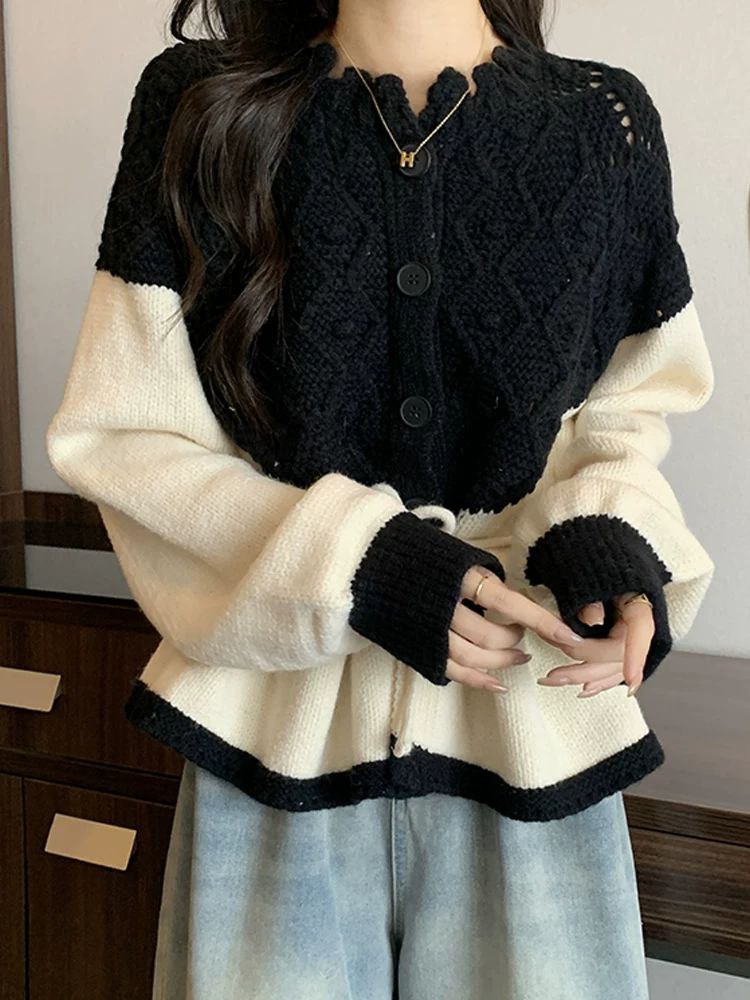 سترة محبوكة مجوفة بألوان متباينة للنساء