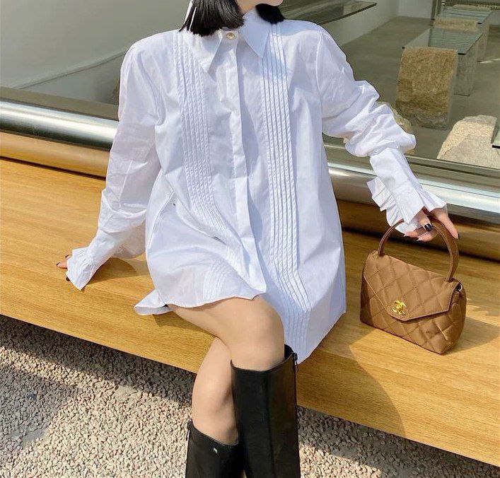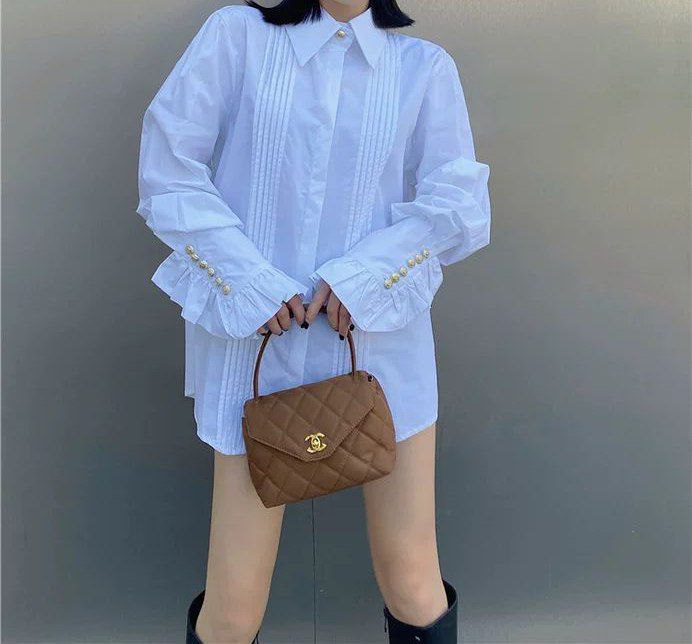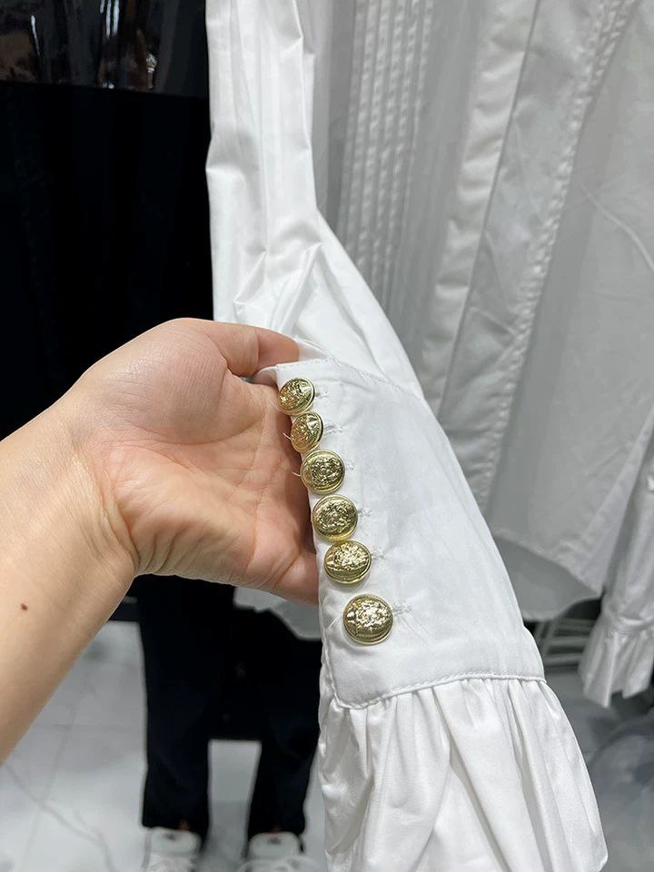 يتميز هذا القميص الأبيض الأنيق بتصميم عصري بأكمام جرس مطوية وكشكشة رقيقة، ليمنحك إطلالة راقية وراقية. مصنوع من قماش قطني عالي الجودة، ناعم، يسمح بمرور الهواء، ومريح للارتداء طوال العام.