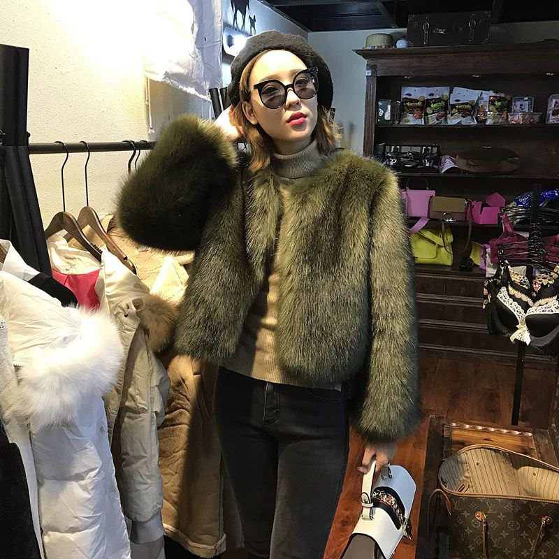 معطف قصير من فرو الثعلب المقلد بتصميم كوري أنيق لفصلي الخريف والشتاء