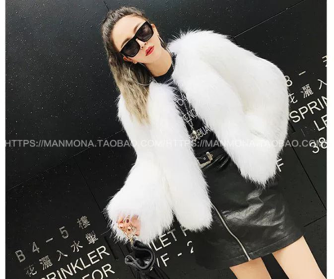 أضيفي إلى خزانتك Women's Short Faux Fox Fur Coat — Korean Style Winter Jacket
