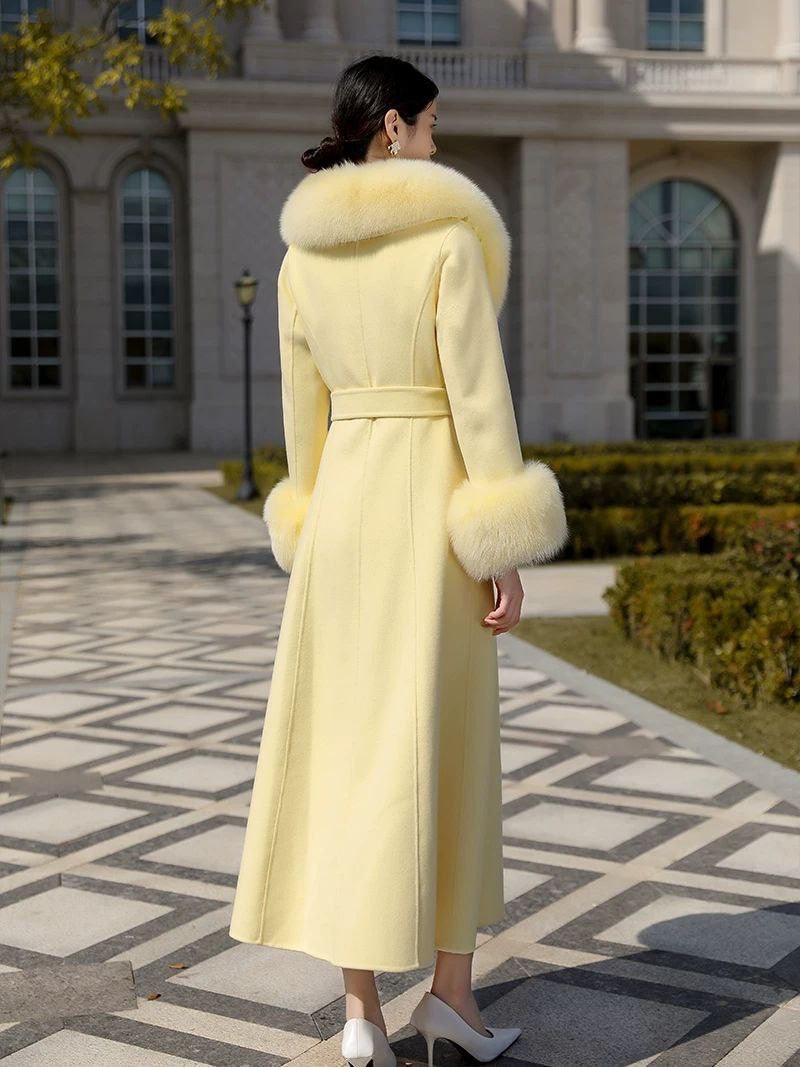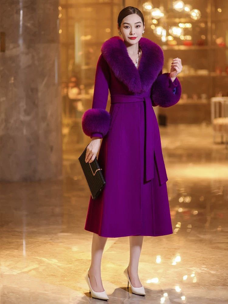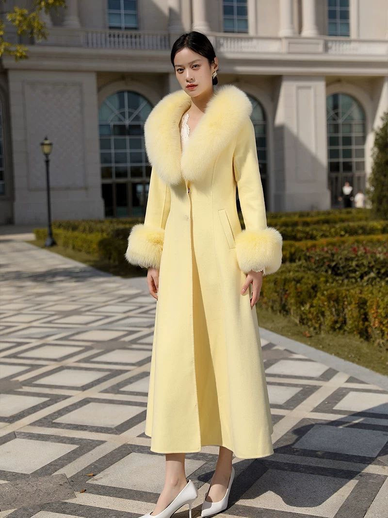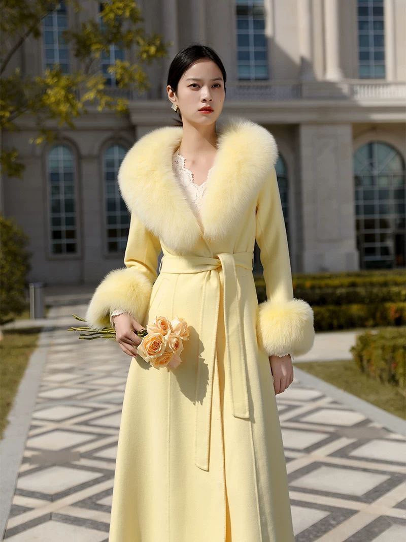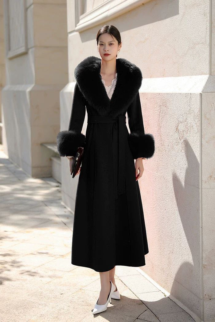 This elegant and noble winter coat combines warmth with luxury. Designed with a detachable real fox fur collar and slim silhouette, enriched with high-quality cashmere touch.