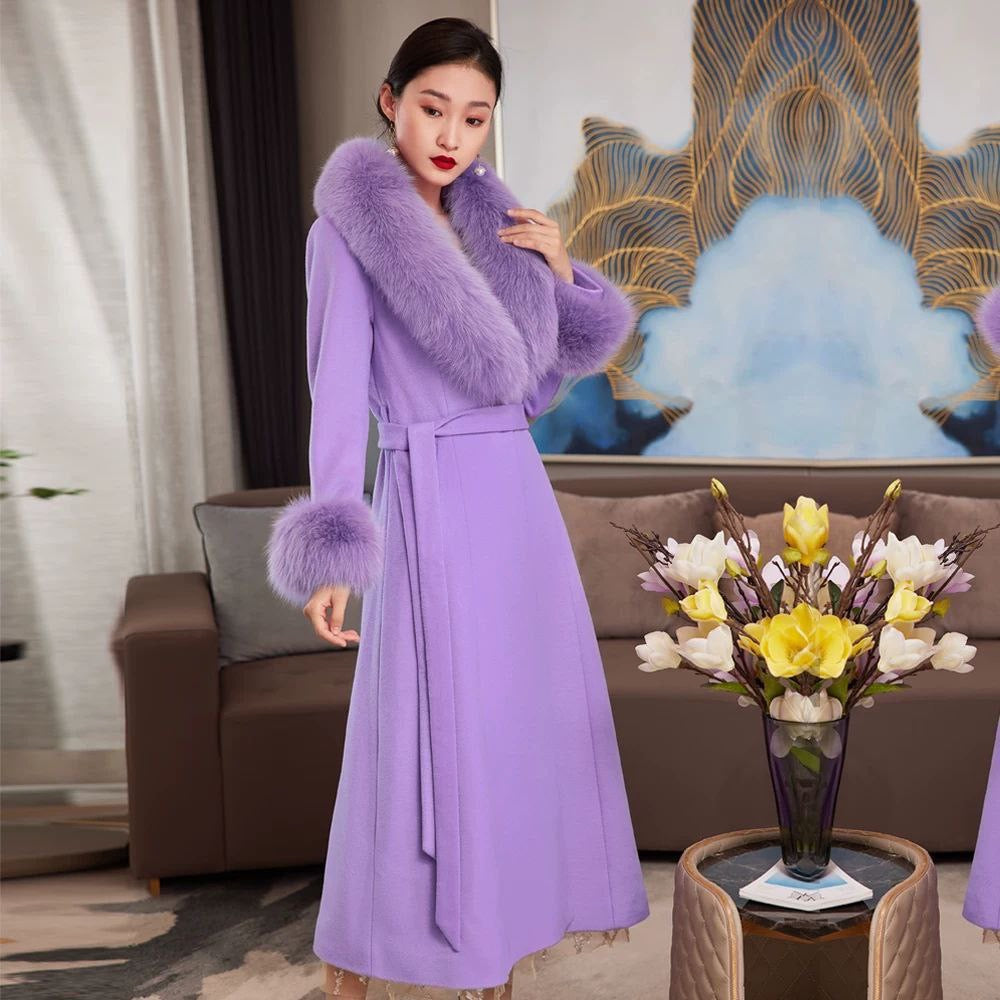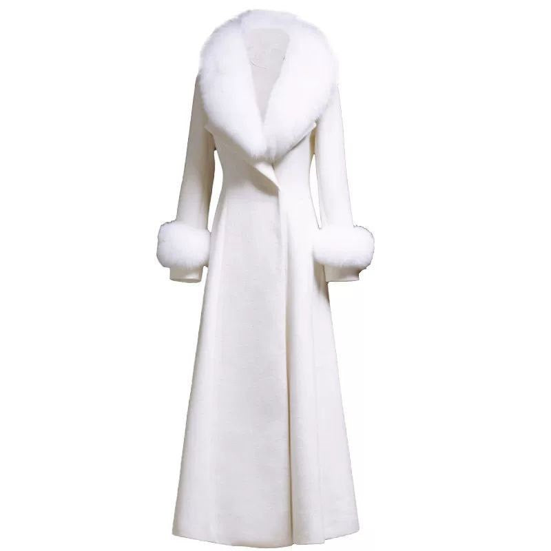 معطف شتوي فاخر من الصوف وفرو الثعلب