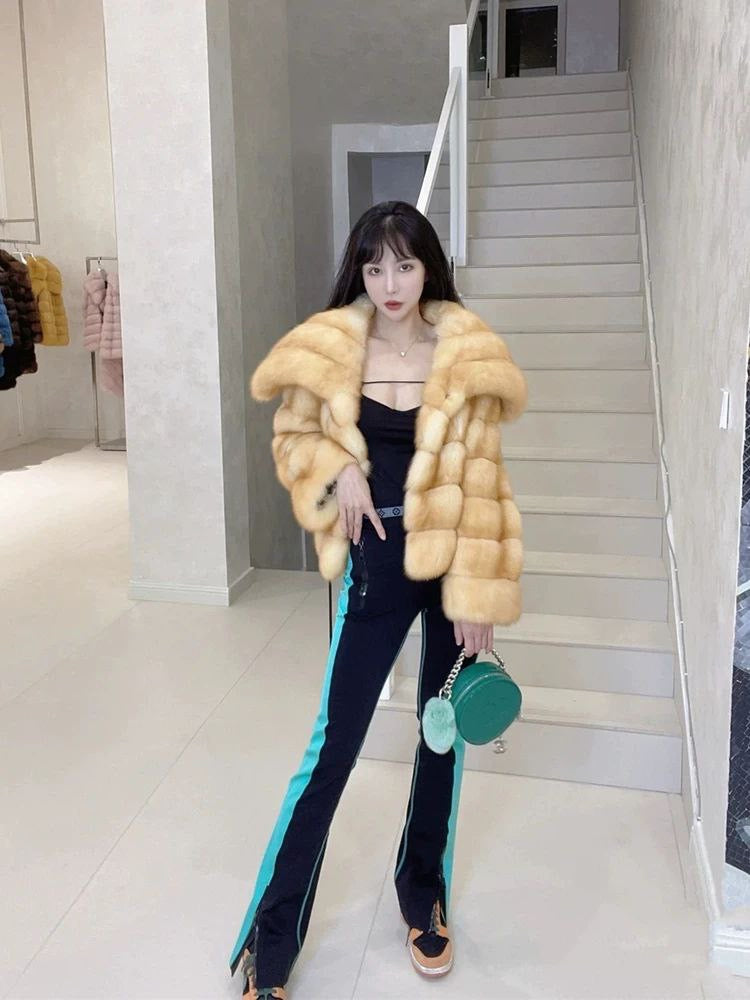 معطف شتوي جديد مصنوع من فرو الثعلب الصناعي الصديق للبيئة، بياقة كبيرة أنيقة ولمسة فاخرة مستوحاة من السمور. أسلوب شبابي وعصري مثالي لفصل الشتاء.