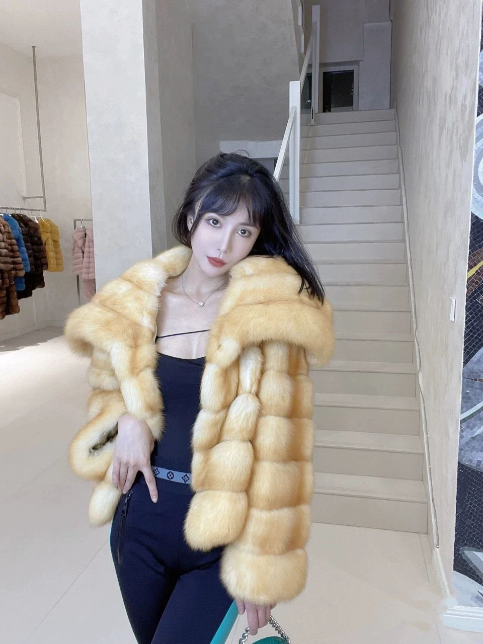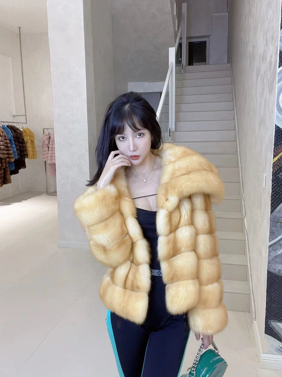 معطف فرو نسائي صديق للبيئة