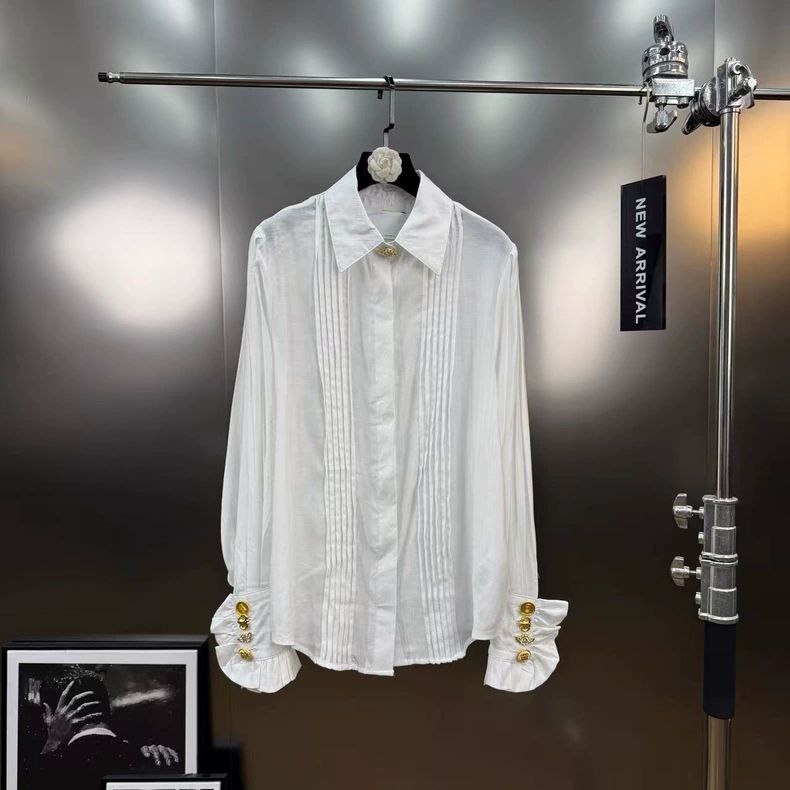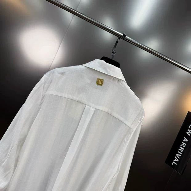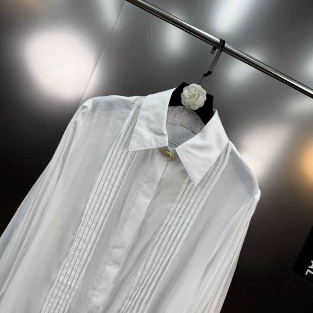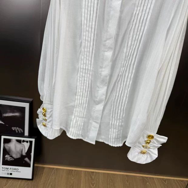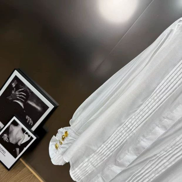 【اتجاه جديد】قميص Yuzumm الأبيض - خريف/شتاء بمشبك معدني مكشكش على طراز المحكمة