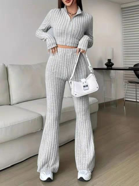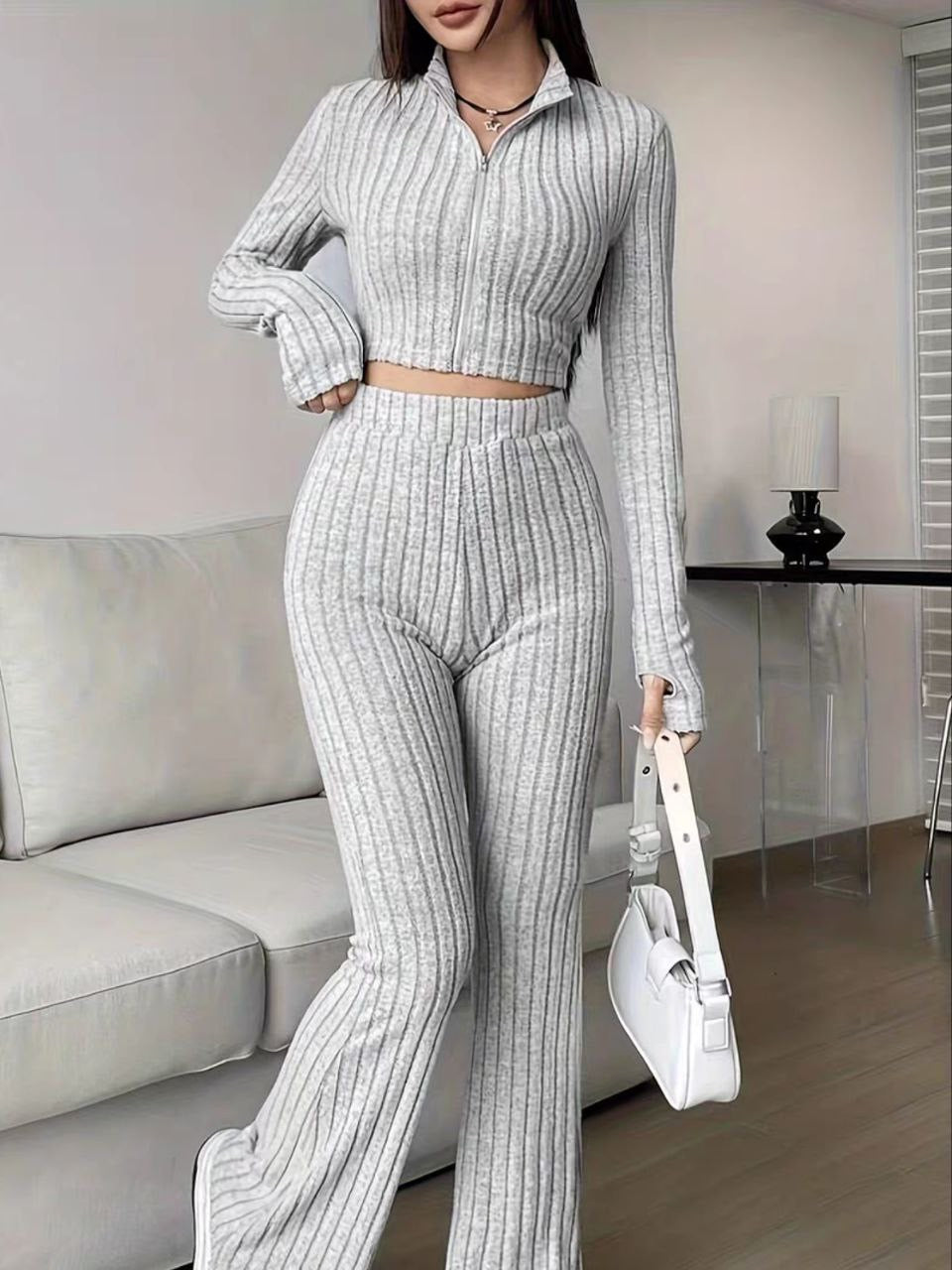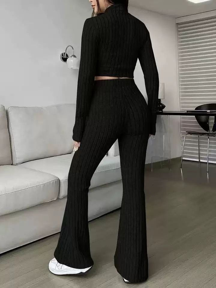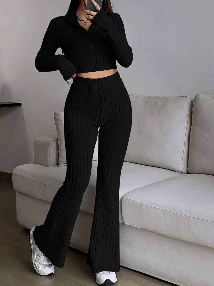 Knitted Crop Top with Zipper & Wide Tracksuit